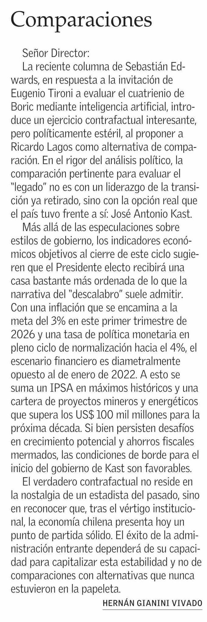 Cartas: Comparaciones 18-01-2026 El Mercurio |