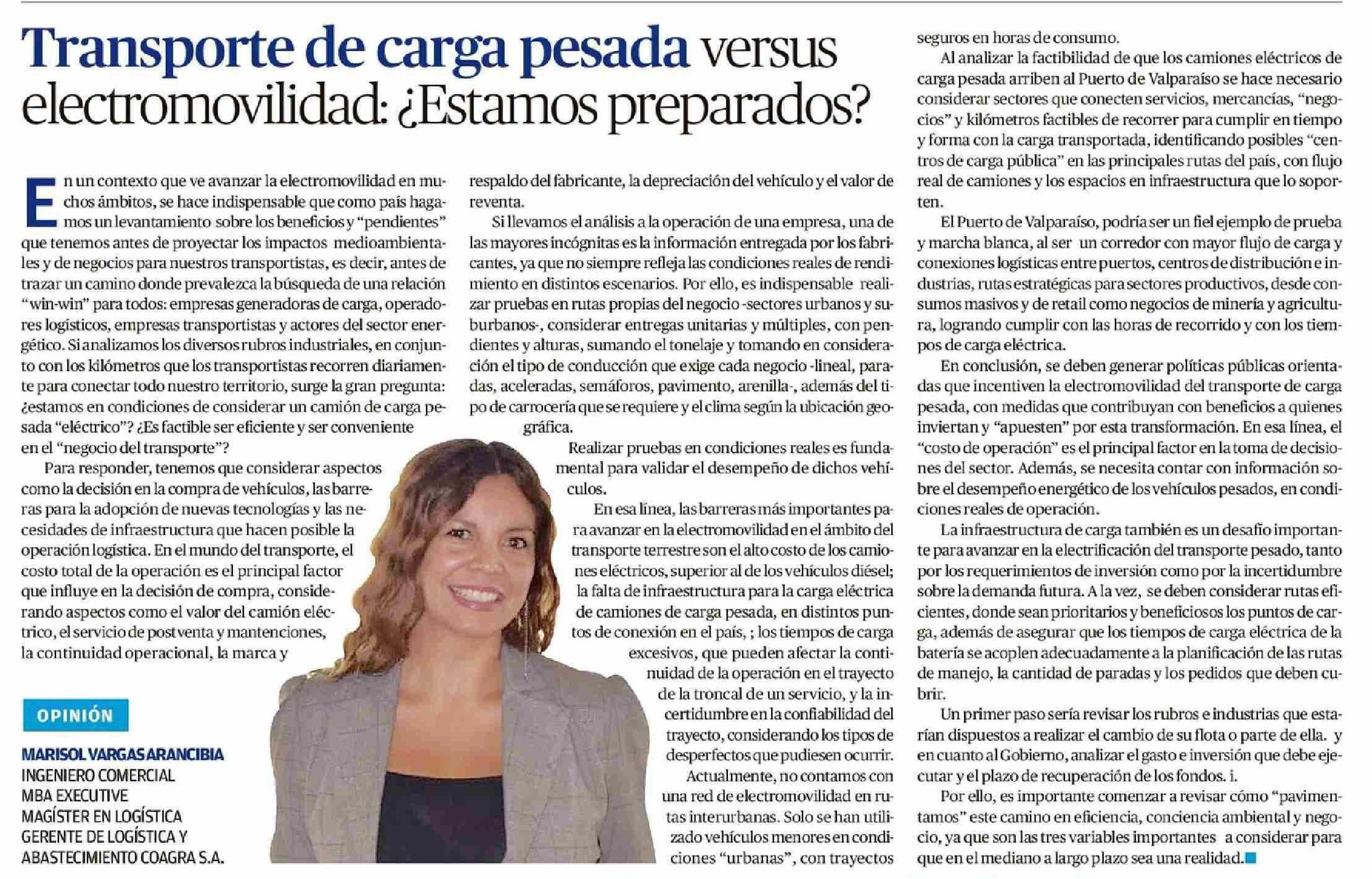 Título: COLUMNAS DE OPINIÓN: Transporte de carga pesada versus electromovilidad: ¿Estamos preparados?