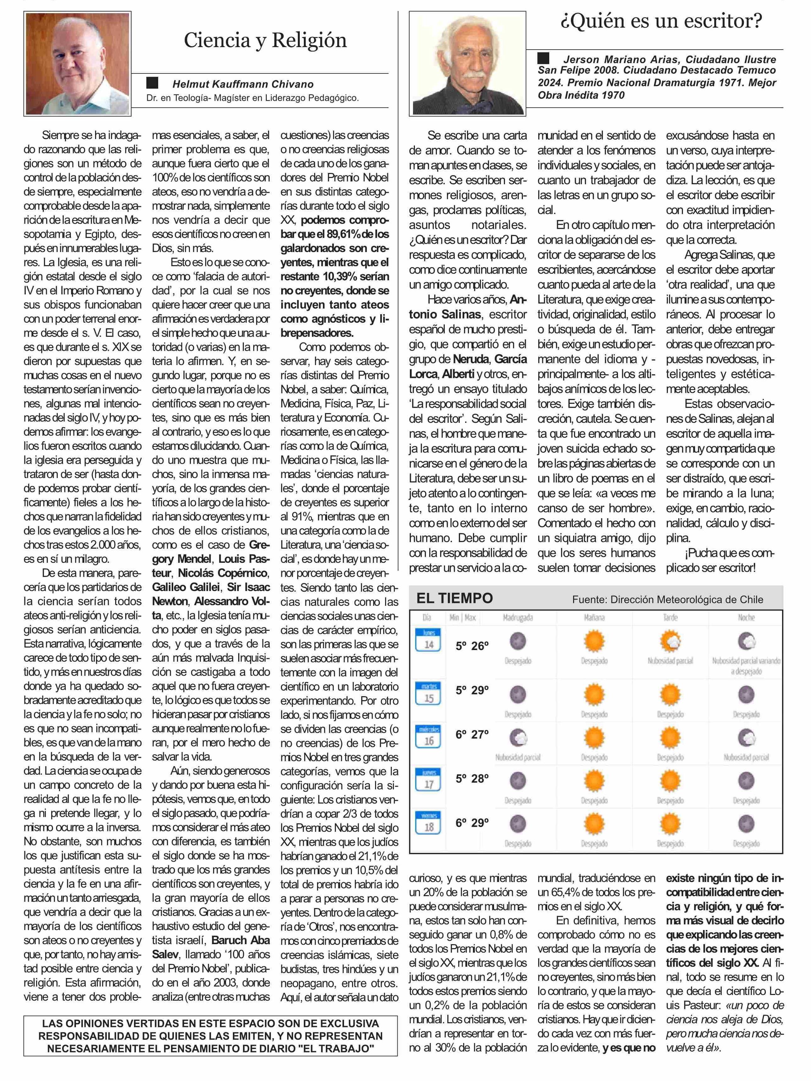 COLUMNAS DE OPINIÓN: Ciencia y Religión 14-04-2025 El Trabajo |
