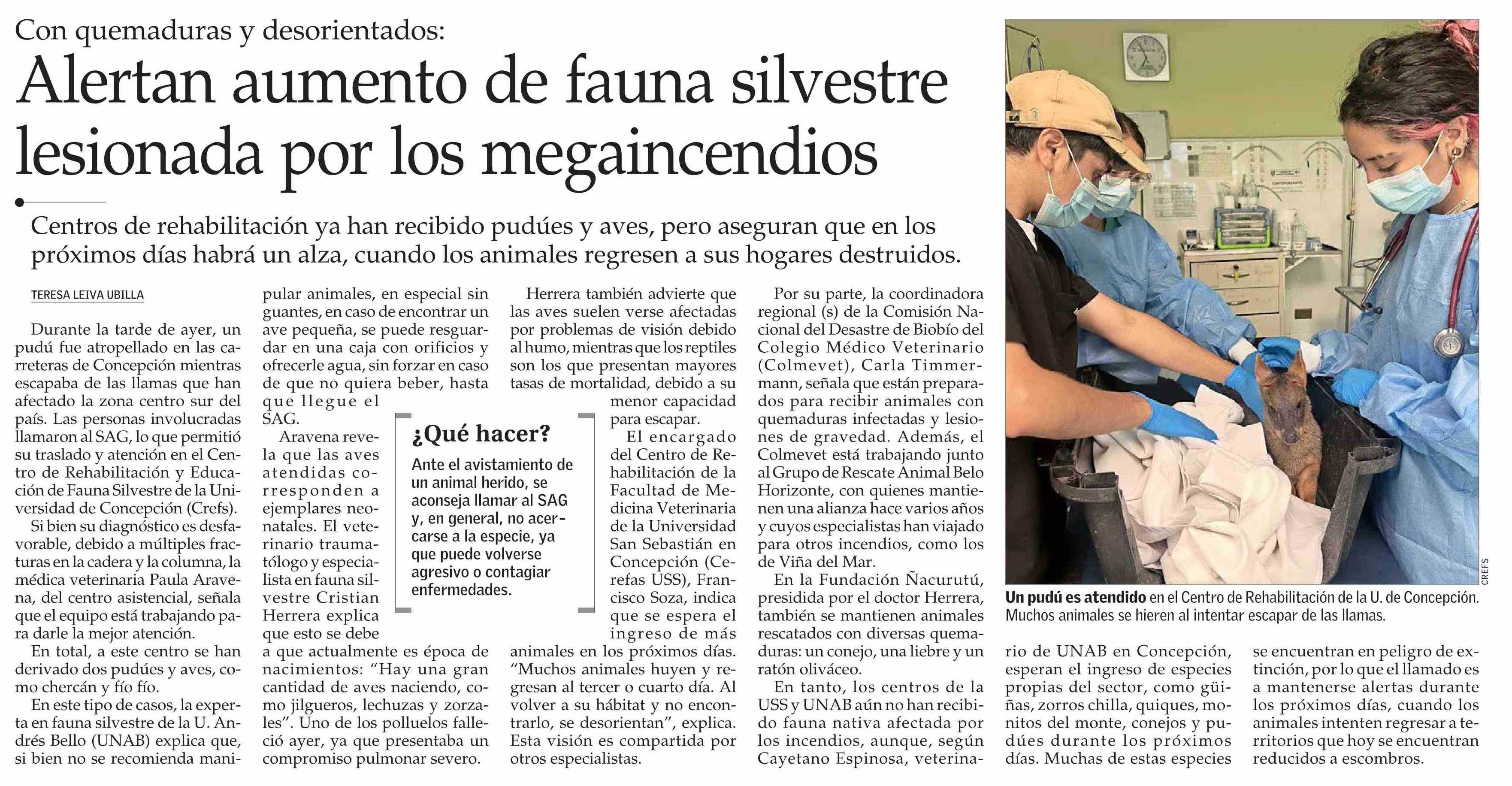 Alertan aumento de fauna silvestre lesionada por los megaincendios 21-01-2026 El Mercurio |