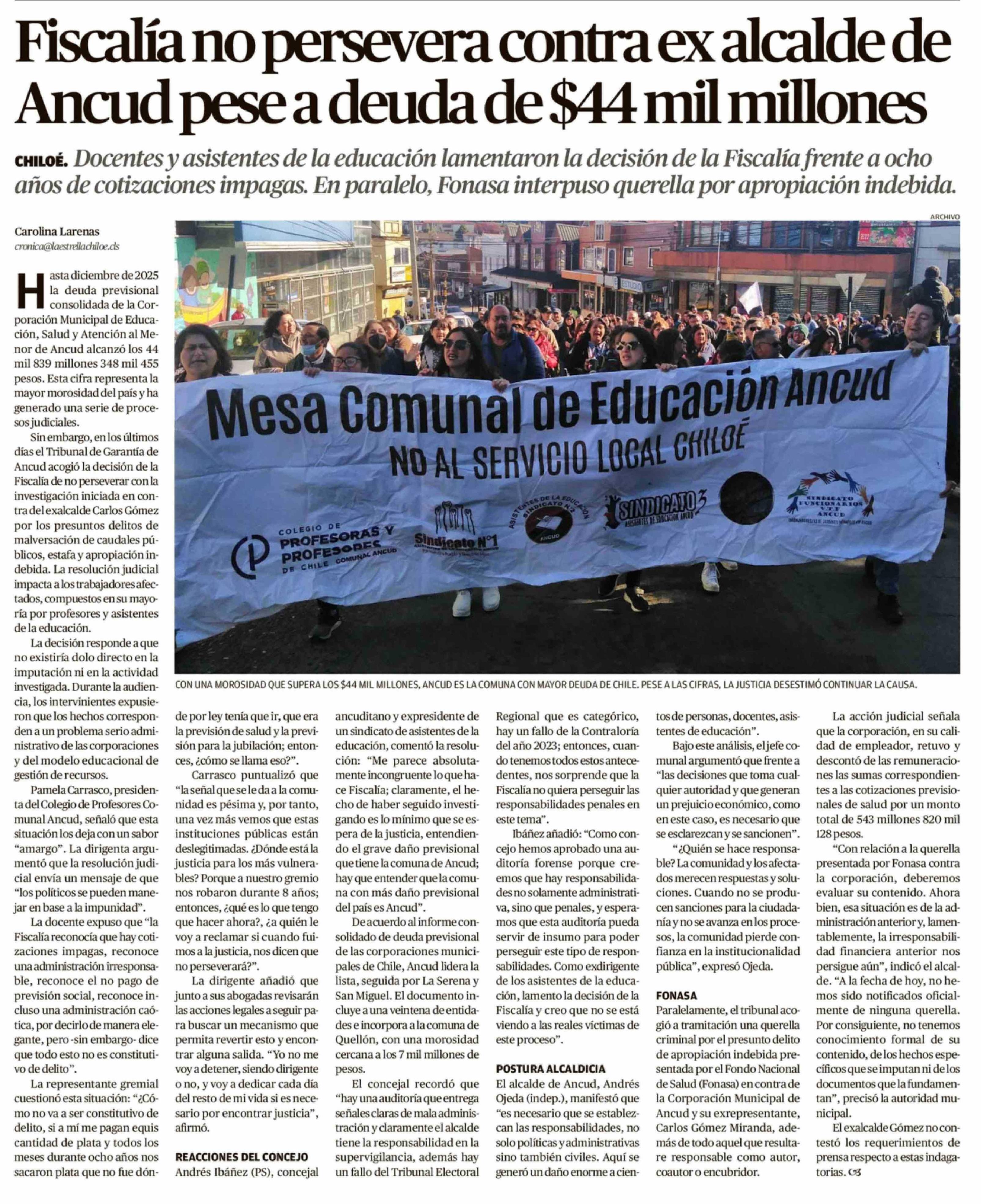 Fiscalía no persevera contra ex alcalde de Ancud pese a deuda de $44 mil millones 19-04-2026 El Llanquihue |