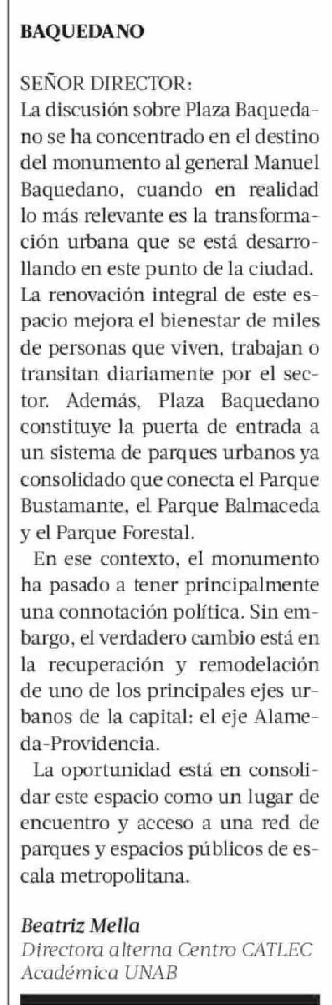Cartas: BAQUEDANO 15-03-2026 La Tercera |