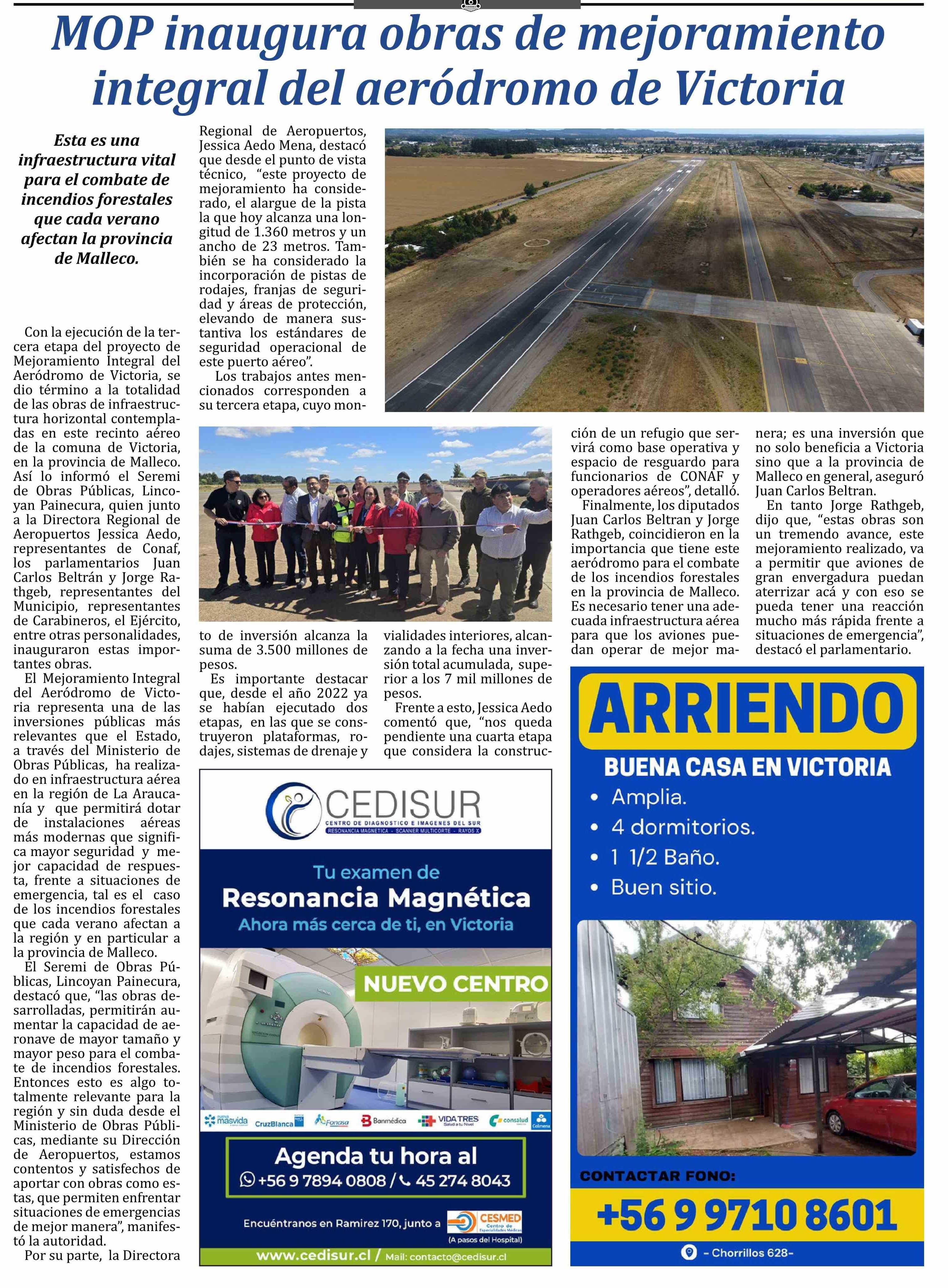 Título: MOP inaugura obras de mejoramiento integral del aeródromo de Victoria