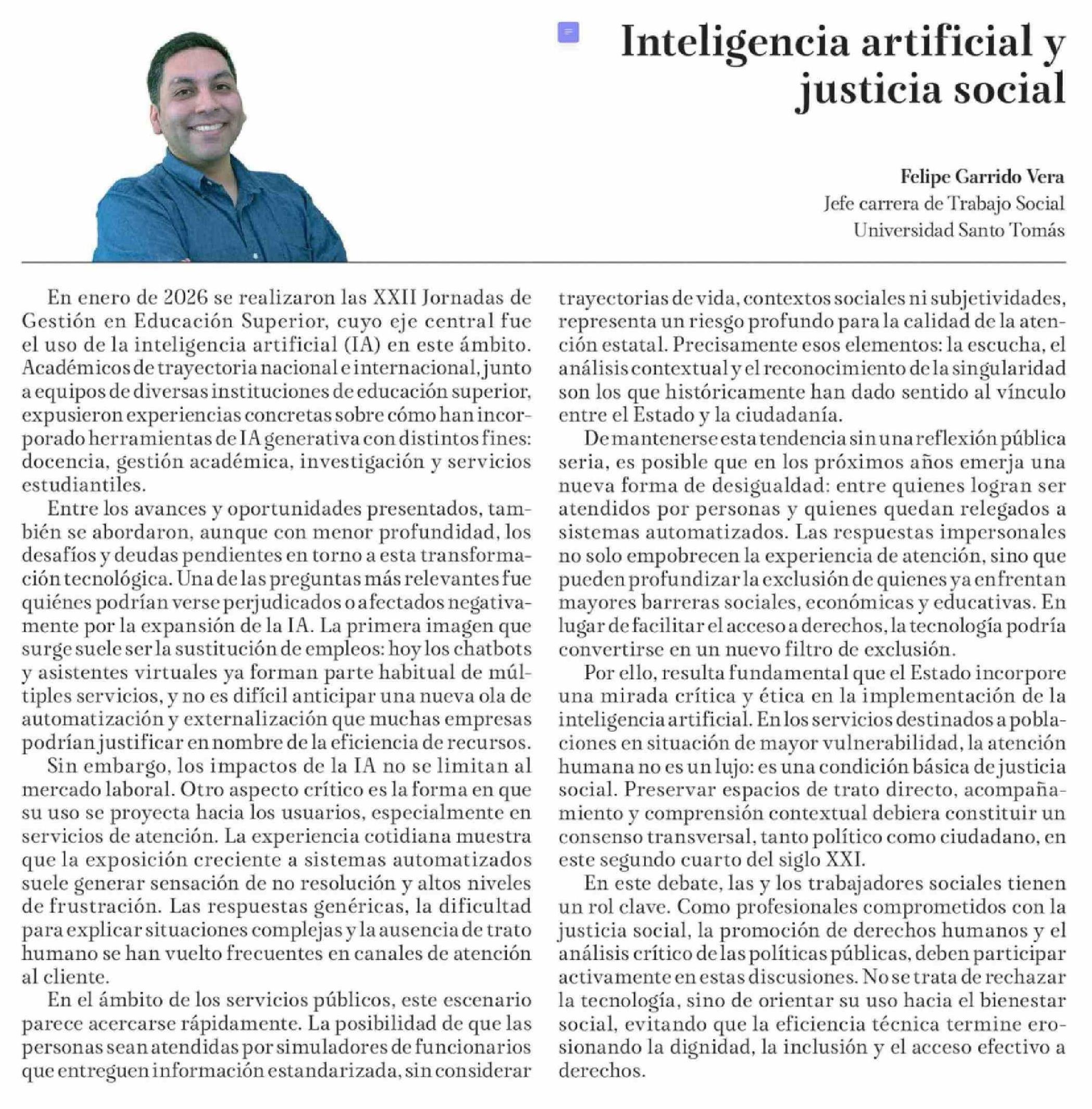 | Título: | Columnas de Opinión: Inteligencia artificial y justicia social |