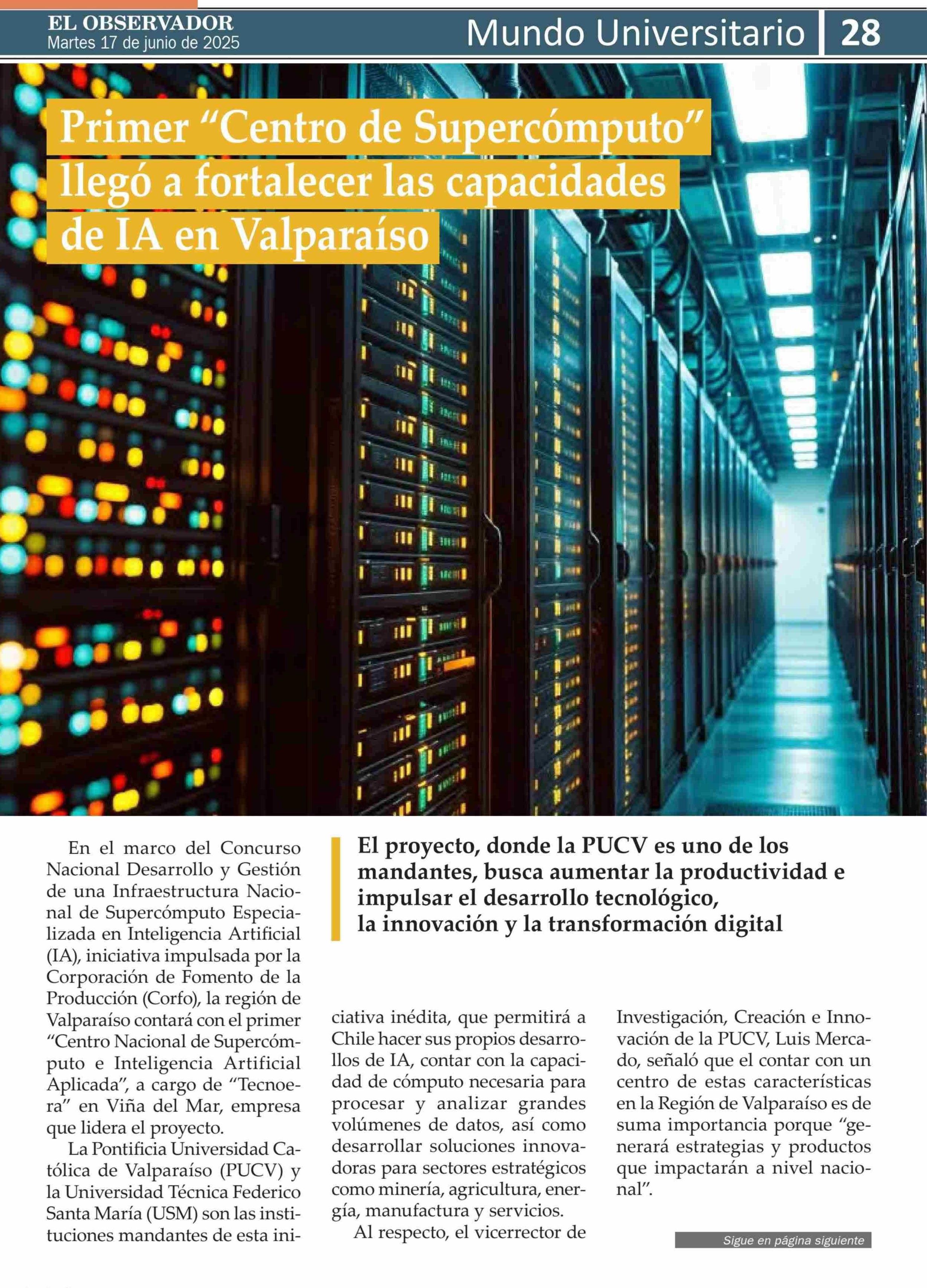 Título: Primer "Centro Supercomputo" llego a fortalecer las capacidades de IA en Valparaíso
