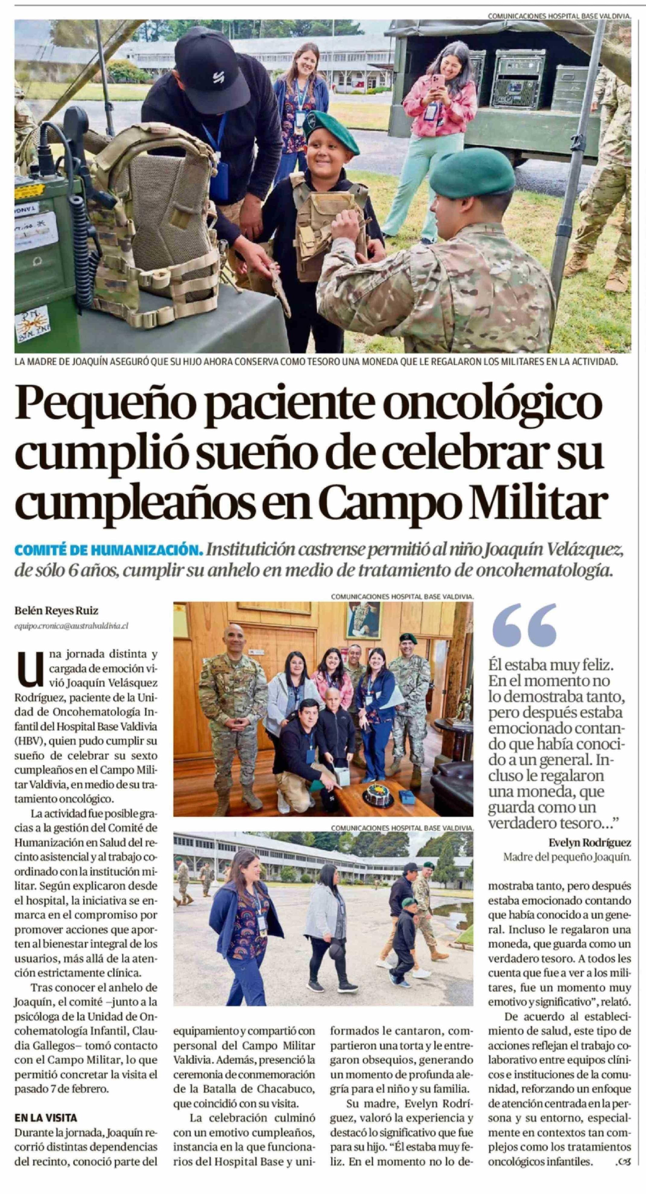 Título: Pequeño paciente oncológico cumplió sueño de celebrar su cumpleaños en Campo Militar