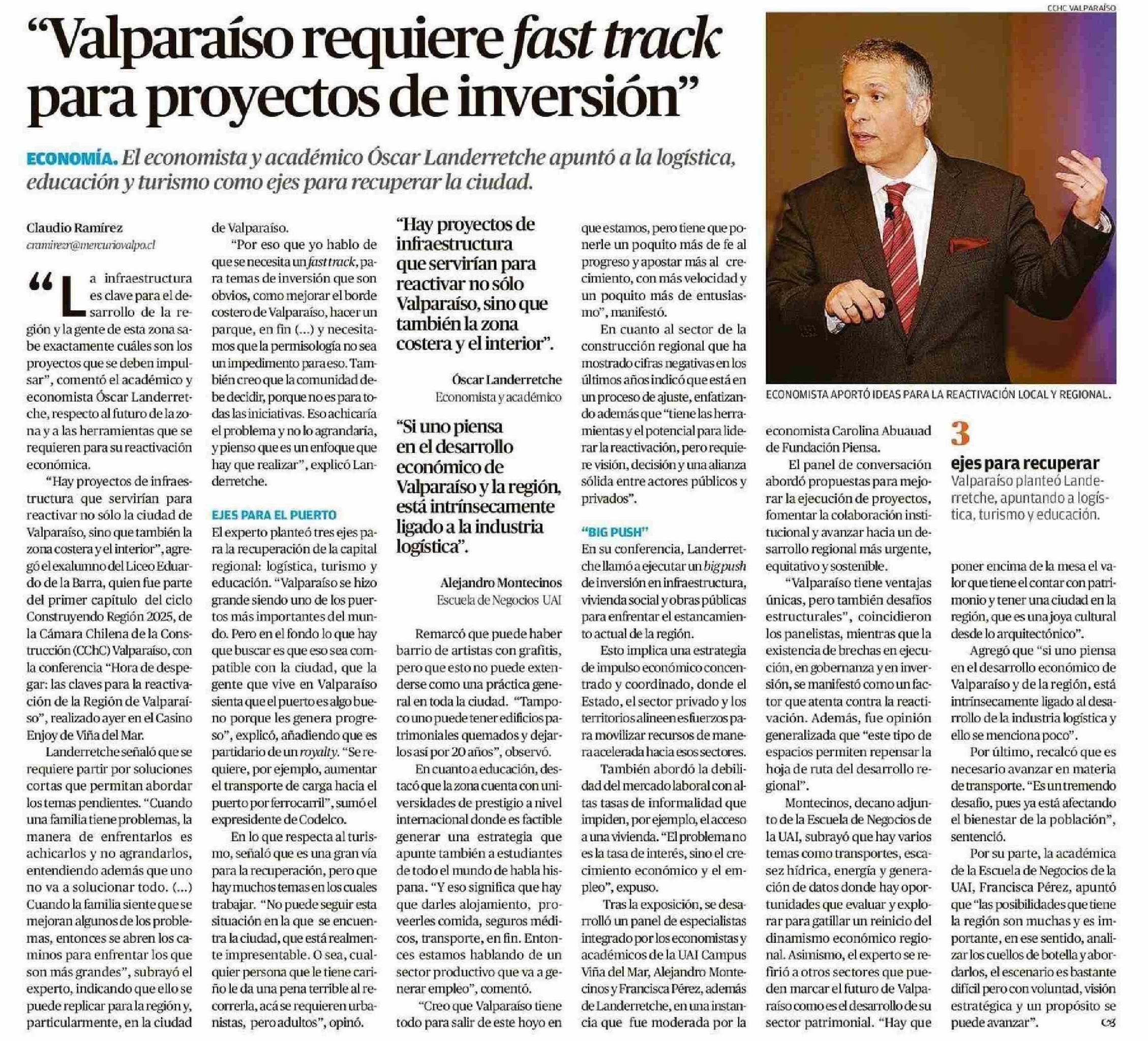 “Valparaíso requiere fast track para proyectos de inversión” 15-05-2025 El Mercurio de Valparaíso |