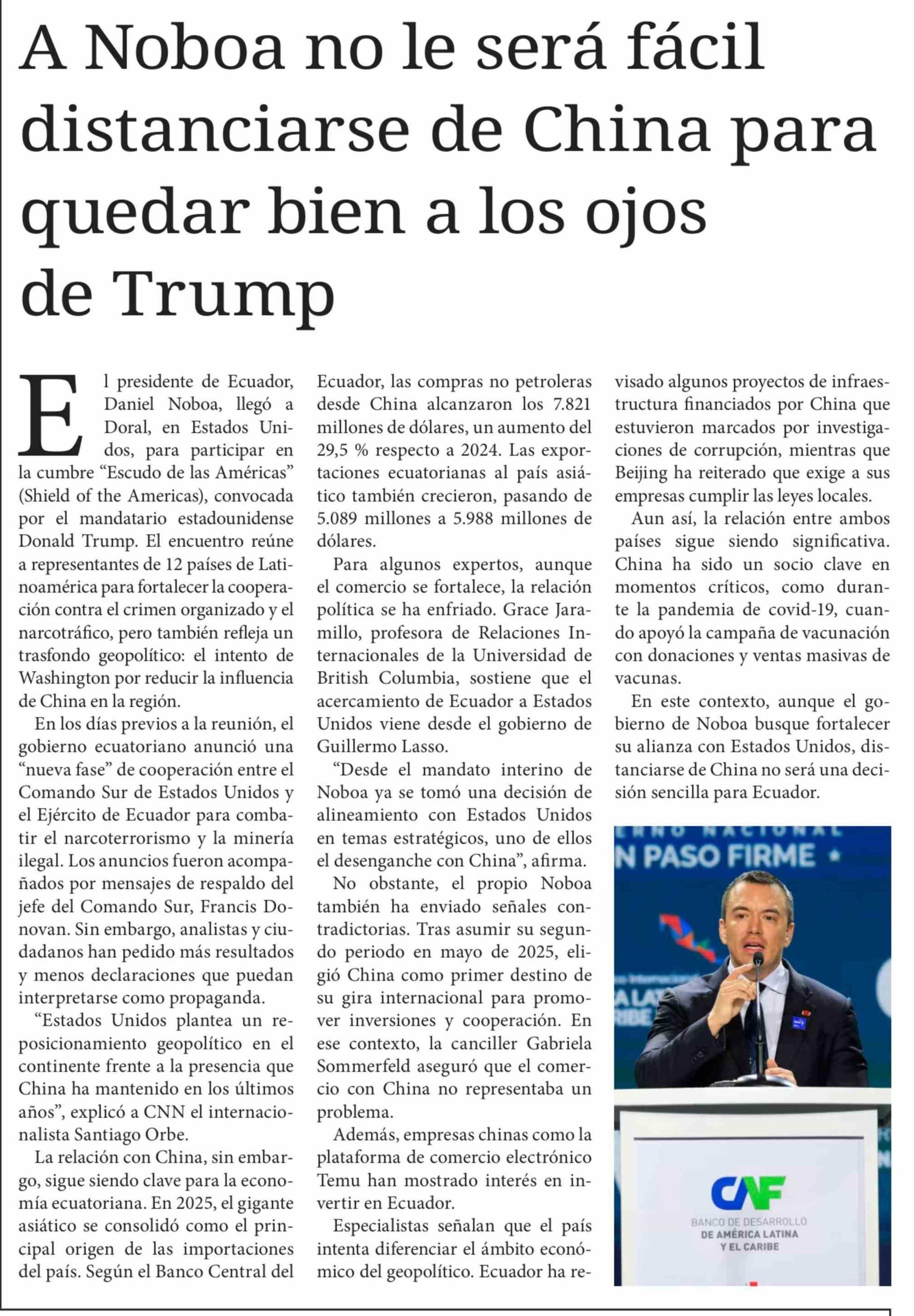 A Noboa no le será fácil distanciarse de China para quedar bien a los ojos de Trump 08-03-2026 Diario Chañarcillo |