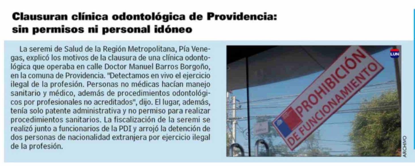 Título: Clausuran clínica odontológica de Providencia: sin permisos ni personal idóneo