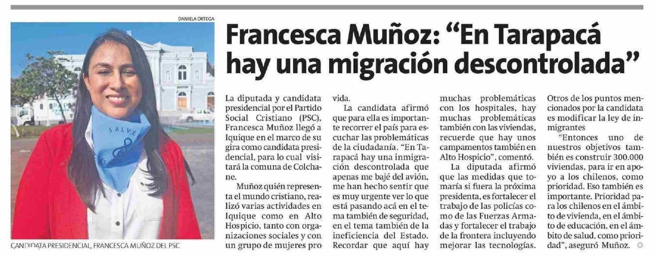 | Título: | Francesca Muñoz: “En Tarapacá hay una migración descontrolada” |