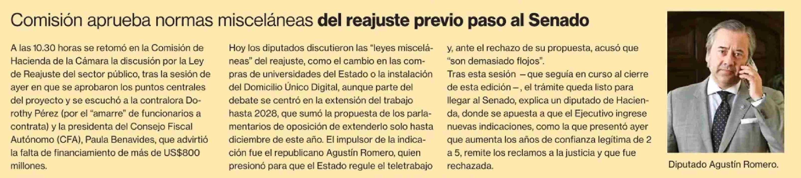 Comisión aprueba normas misceláneas del reajuste previo paso al Senado 13-01-2026 La Segunda |