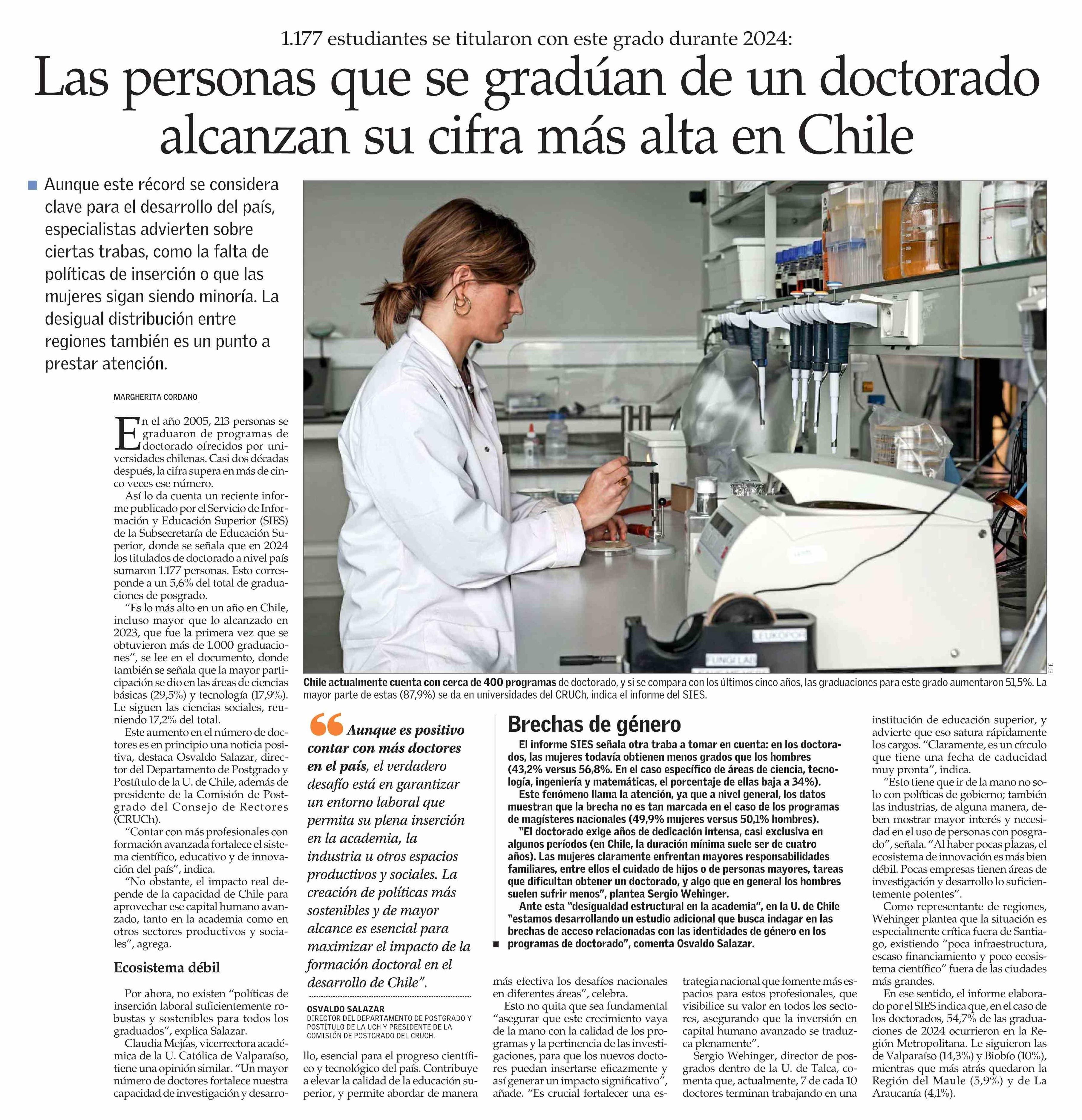 Título: Las personas que se gradúan de un doctorado alcanzan su cifra más alta en Chile