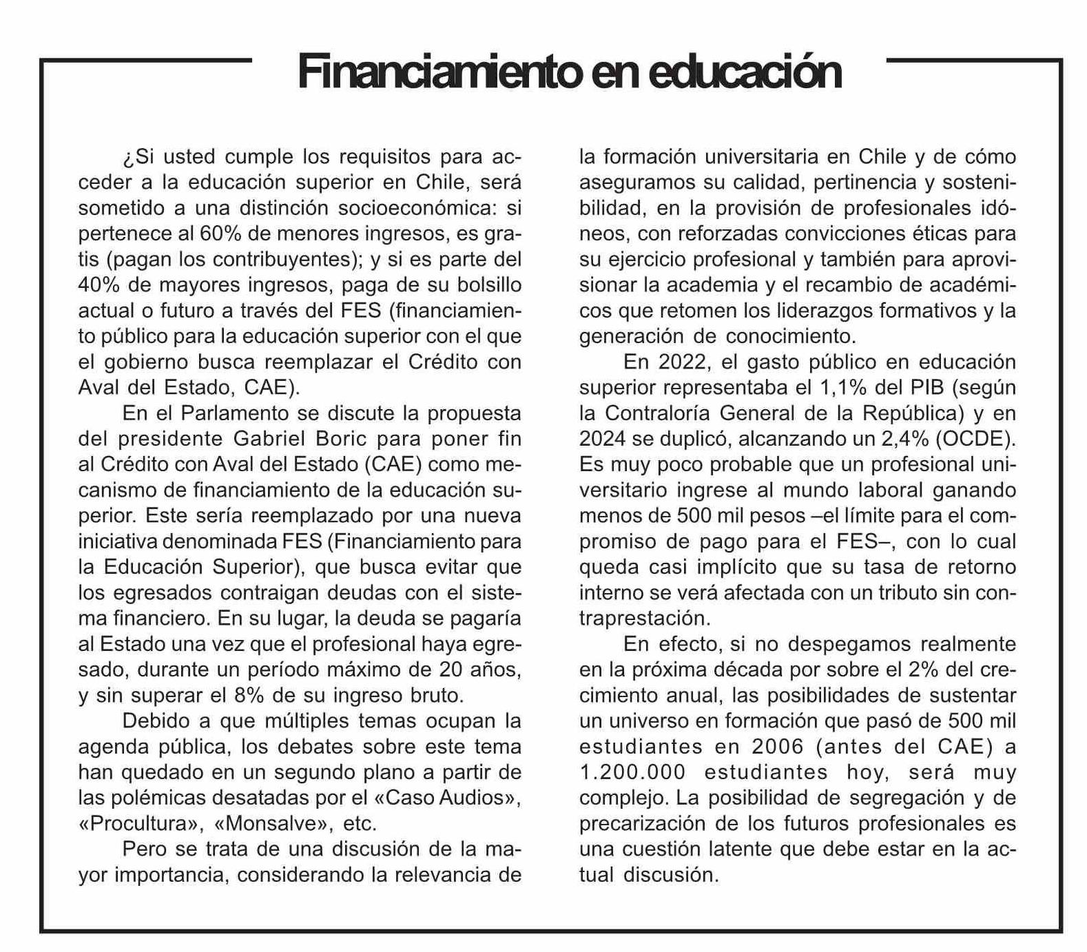 EDITORIAL: Financiamiento en educación 31-05-2025 Diario la Región |