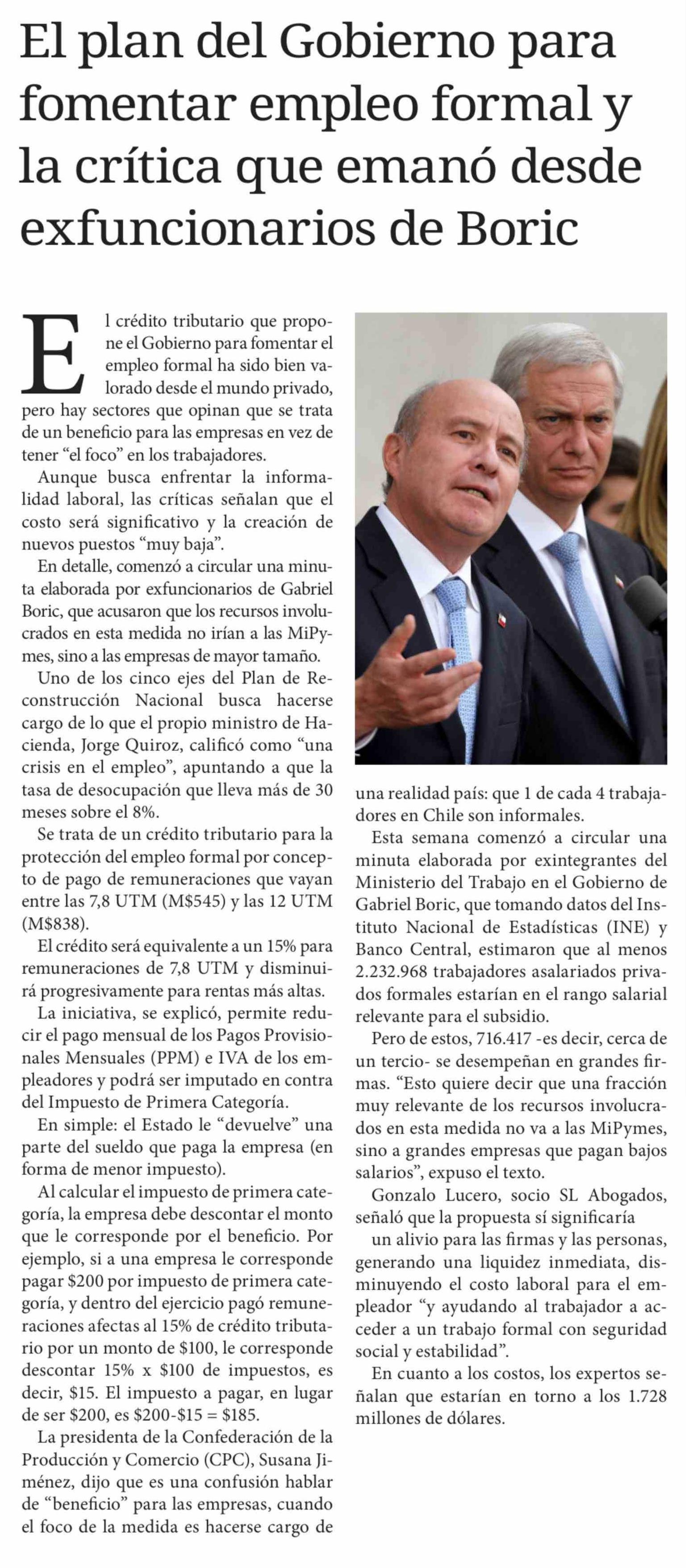 Título: El plan del Gobierno para fomentar empleo formal y la crítica que emanó desde exfuncionarios de Boric
