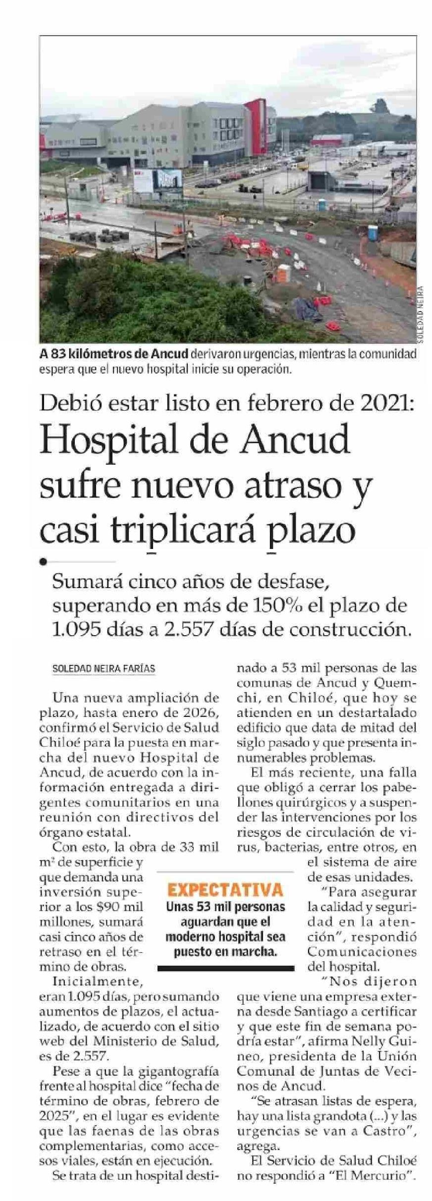 Título: Hospital de Ancud sufre nuevo atraso y Casi triplicará plazo