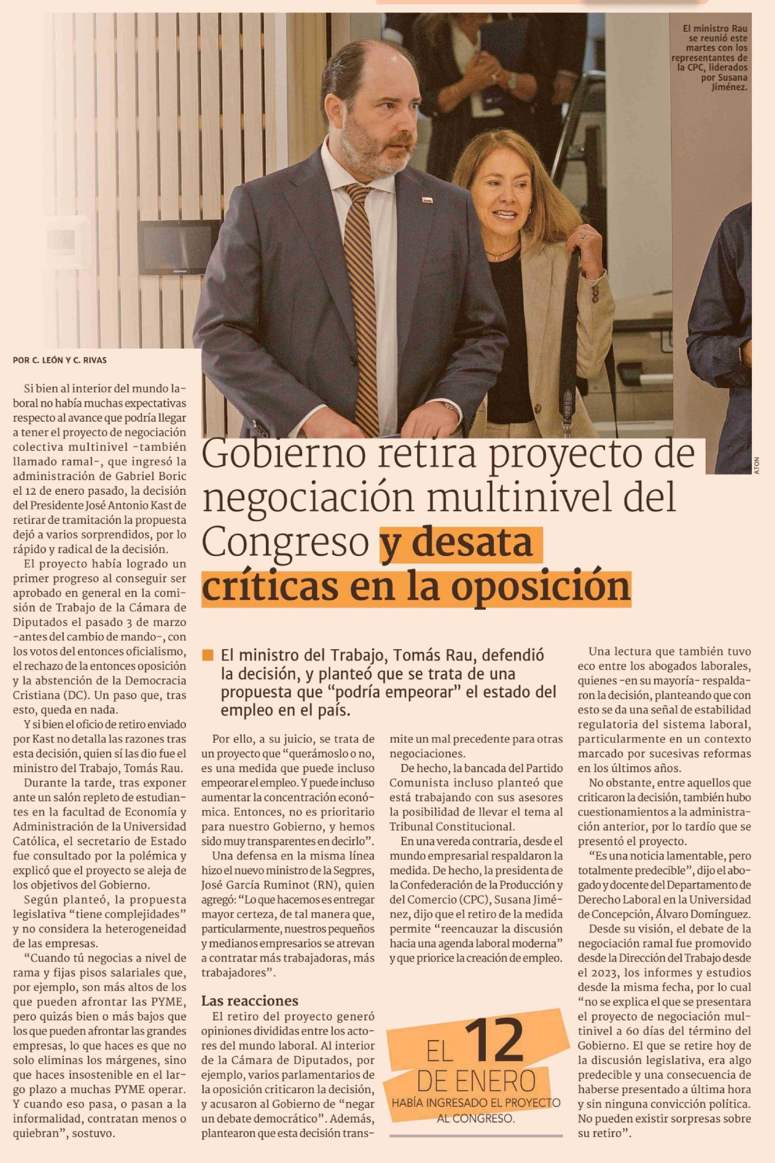 Título: Gobierno retira proyecto de negociación multinivel del Congreso y desata críticas en la oposición
