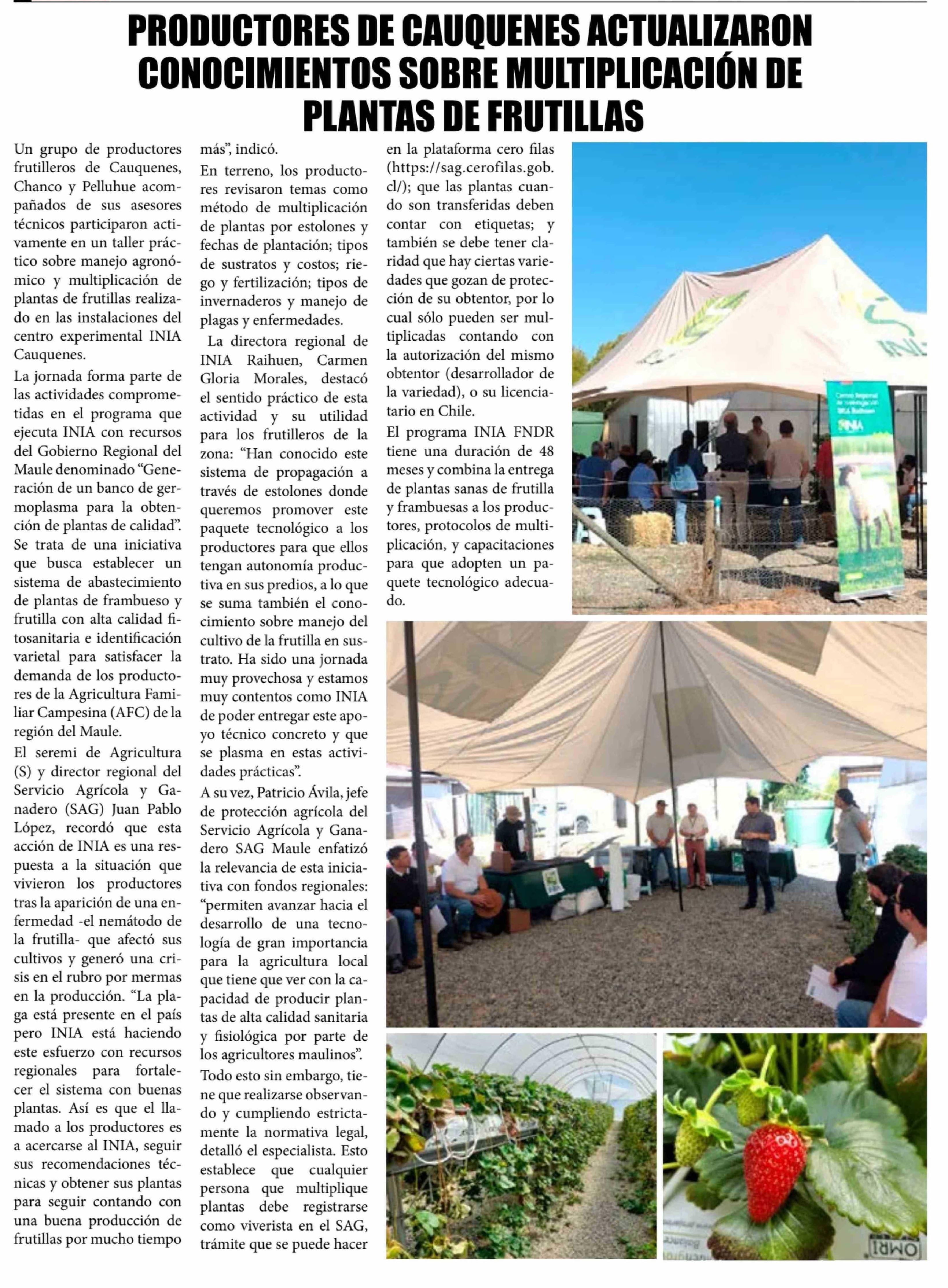Título: PRODUCTORES DE CAUQUENES ACTUALIZARON CONOCIMIENTOS SOBRE MULTIPLICACIÓN DE PLANTAS DE FRUTILLAS