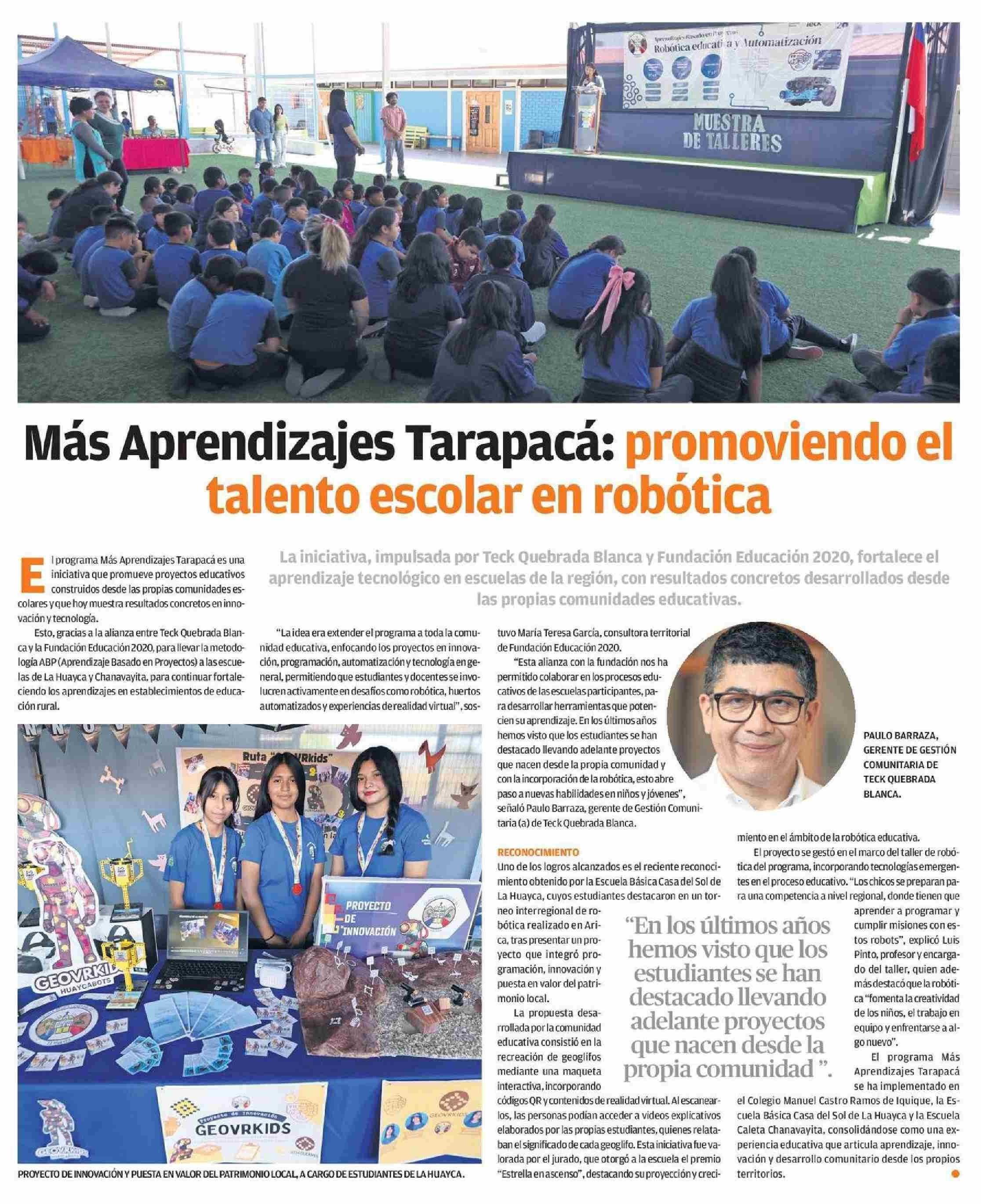 Más Aprendizajes Tarapacá: promoviendo el talento escolar en robótica 11-01-2026 La Estrella de Iquique |