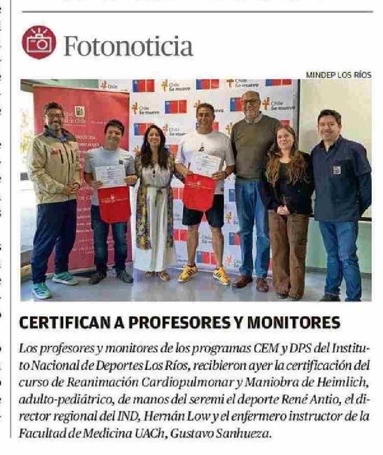 CERTIFICAN A PROFESORES Y MONITORES 17-01-2026 Diario Austral Región de Los Ríos |
