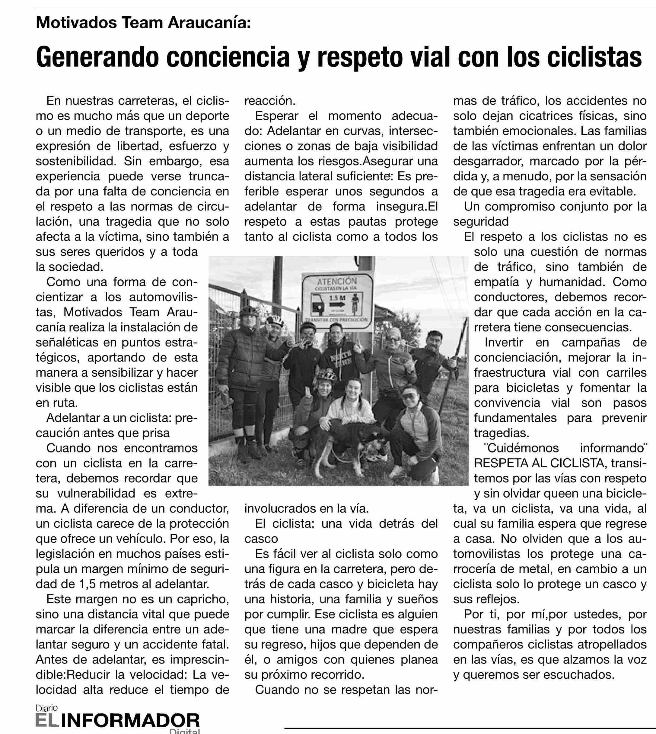 | Título: | Generando conciencia y respeto vial con los ciclistas |