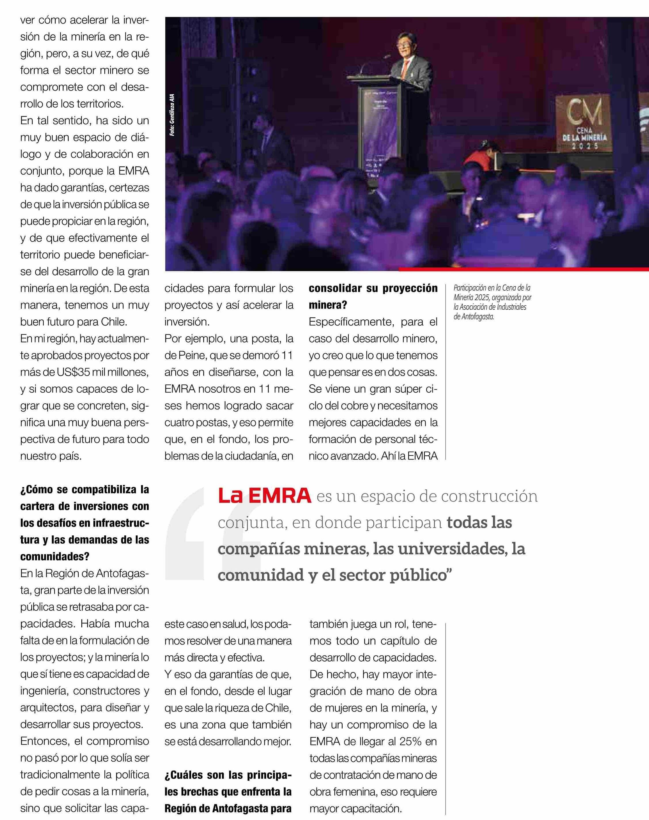 "la única forma de aprovechar este nuevo ciclo de cobre es dando garantías de desarrollo” 23-04-2026 Revista Minería Chilena |
