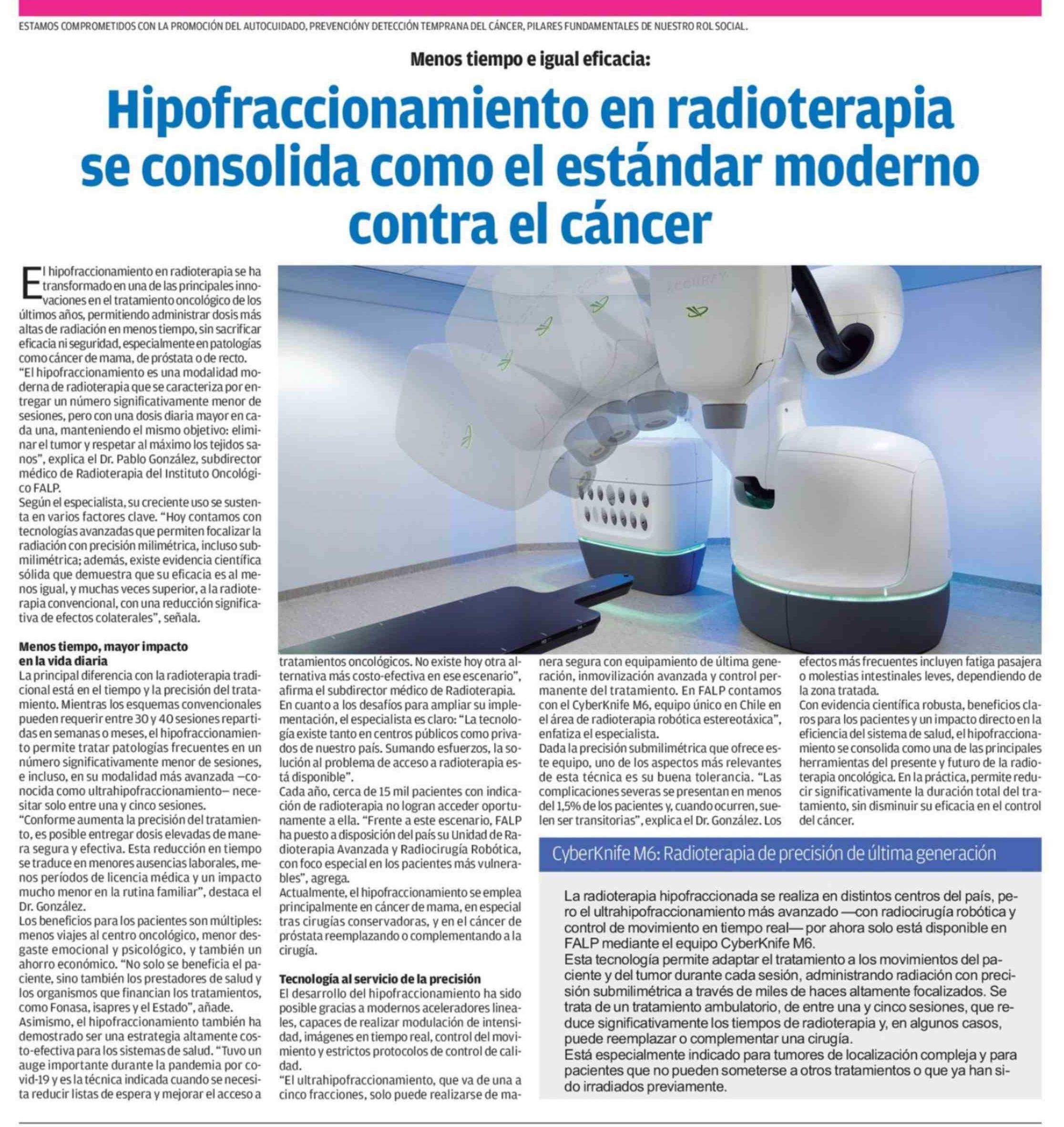 | Título: | Hipofraccionamiento en radioterapia se consolida como el estándar moderno contra el cáncer |