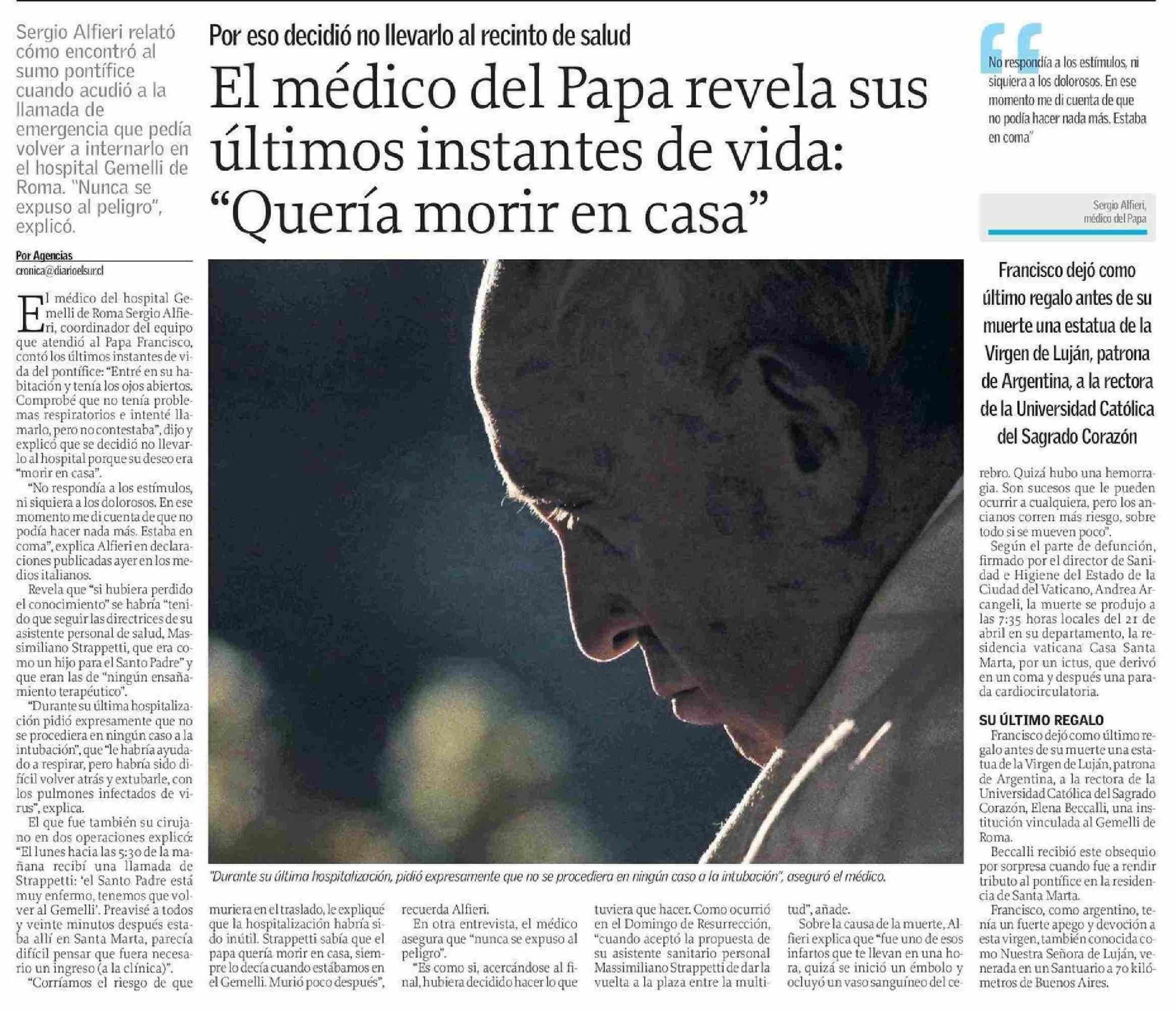 El médico del Papa revela sus “Quería morir en casa” últimos instantes de vida: 25-04-2025 El Sur |