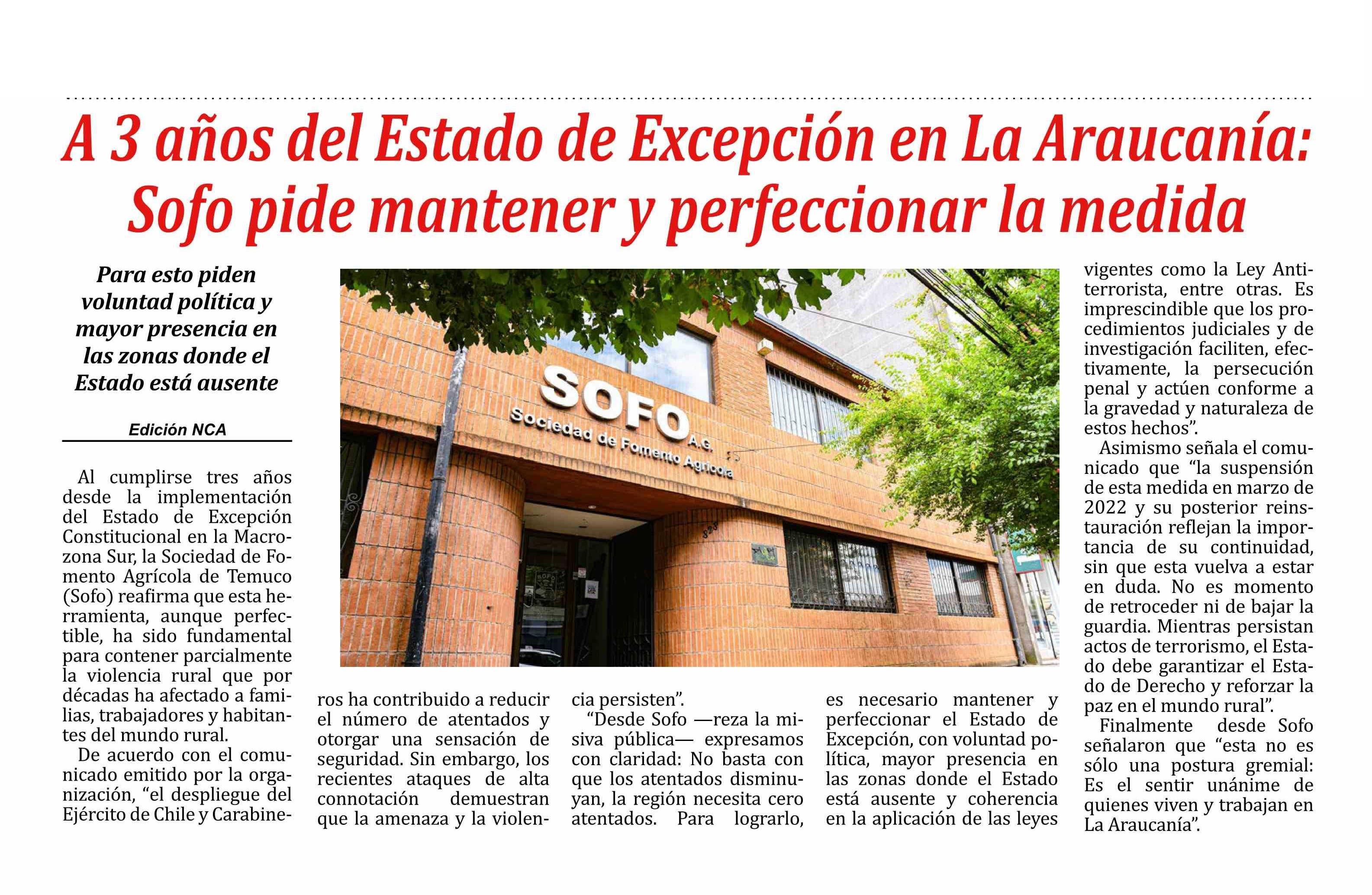 A 3 años del Estado de Excepción en La Araucanía: Sofo pide mantener y perfeccionar la medida 15-05-2025 Las Noticias |