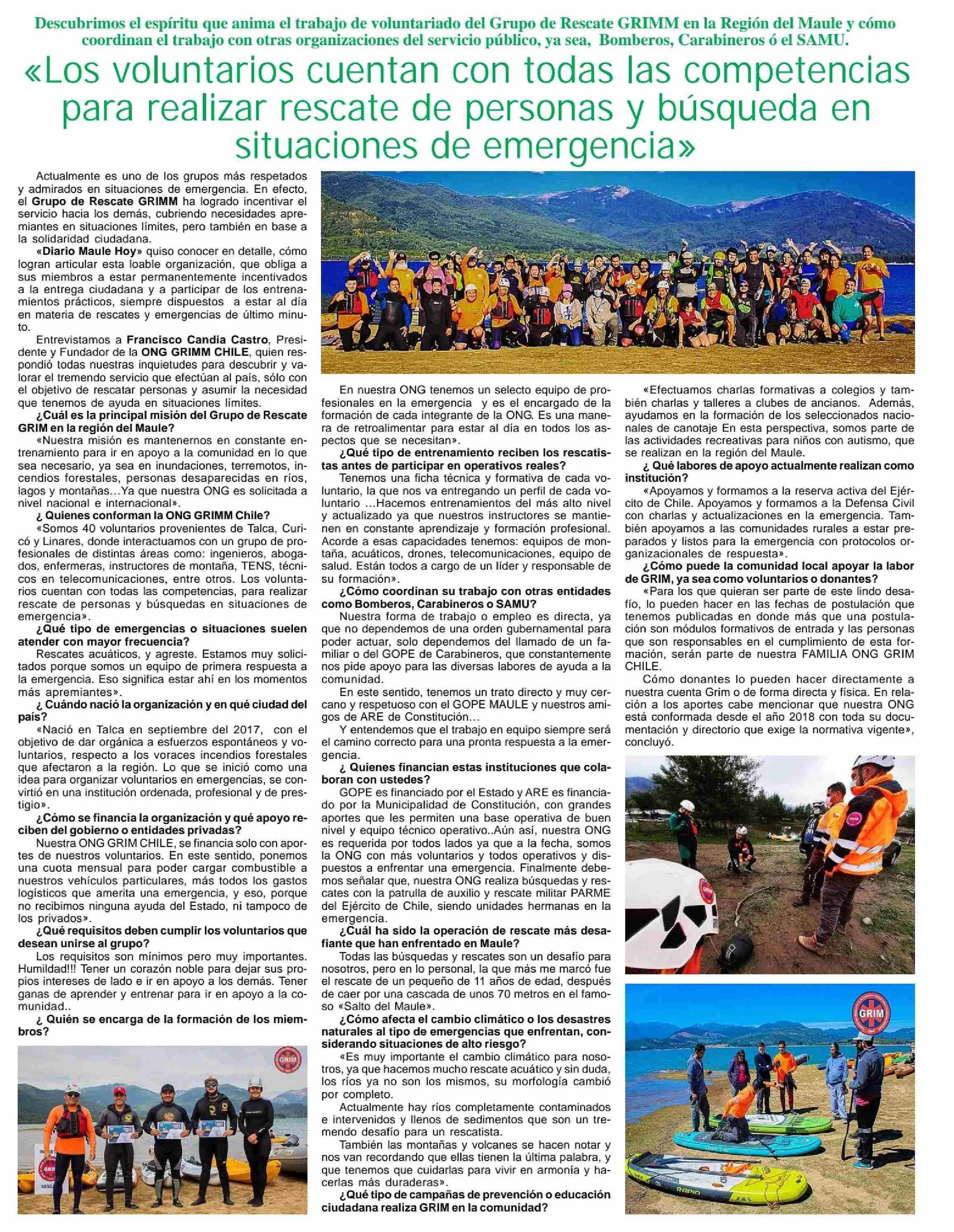 «Los voluntarios cuentan con todas las competencias para realizar rescate de personas y búsqueda en situaciones de emergencia» 27-04-2025 Maule Hoy |