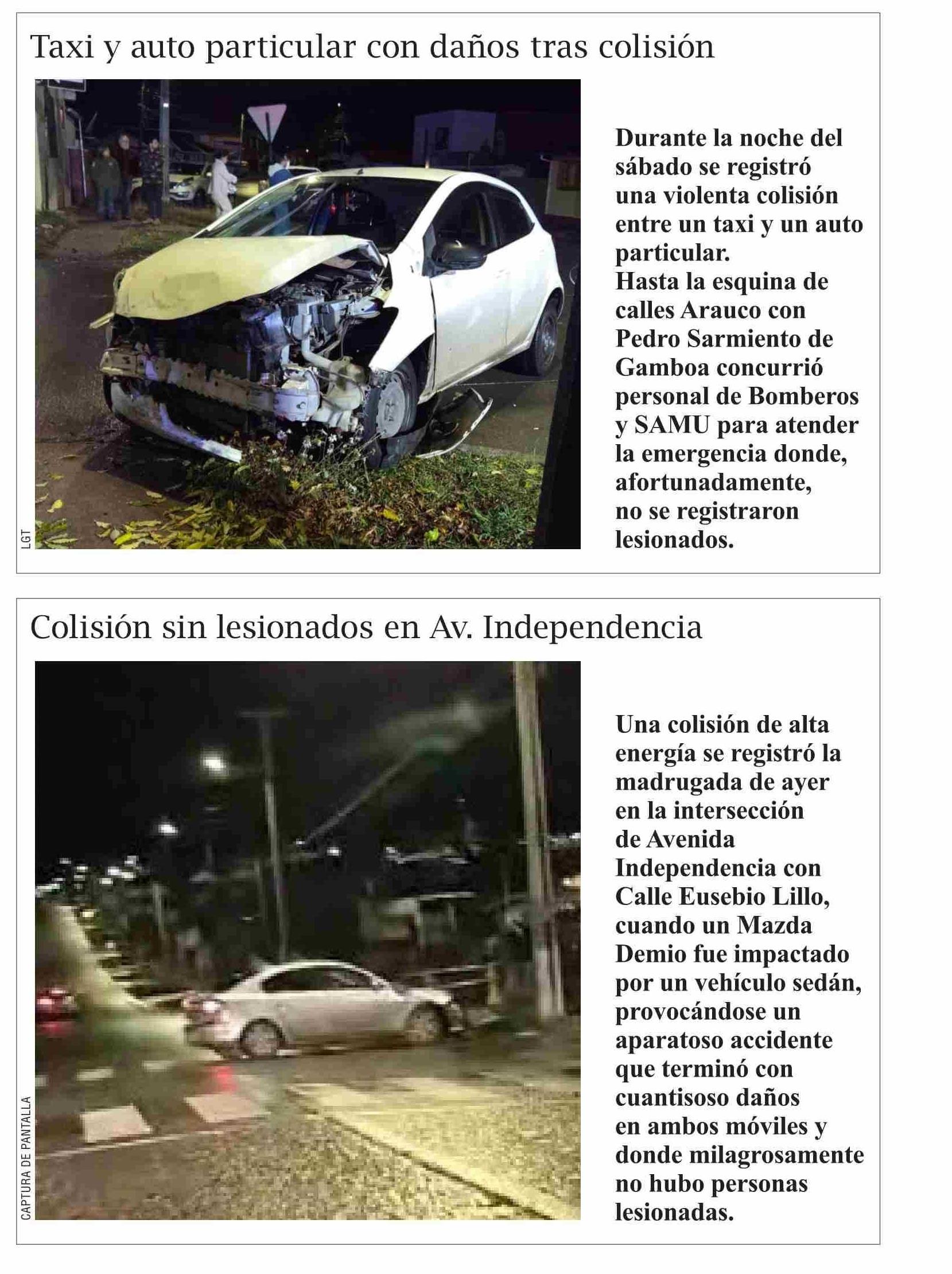 Taxi y auto particular con daños tras colisión 26-05-2025 El Pingüino |