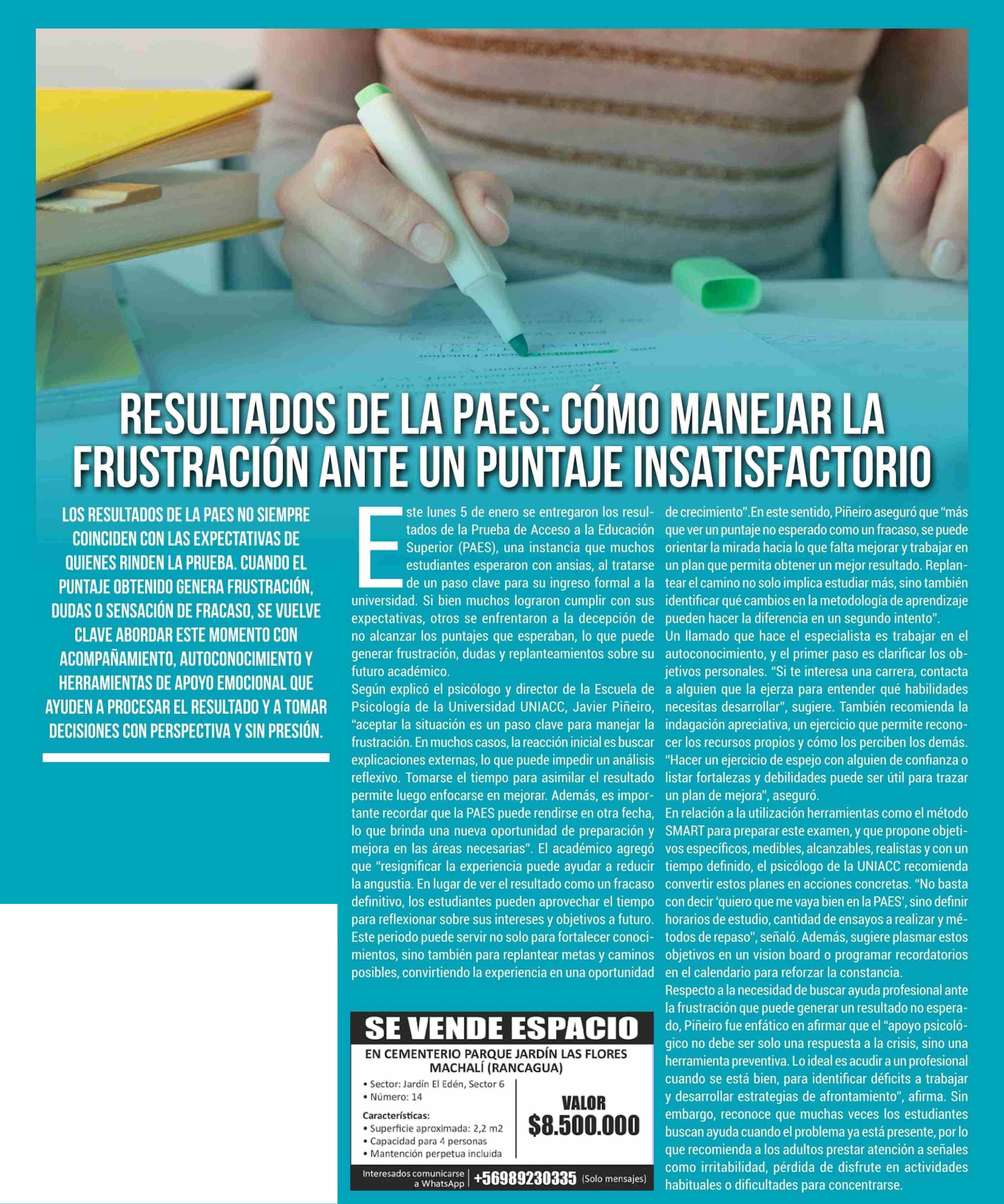 Título: RESULTADOS DE LA'PAES: CÓMO MANEJAR LA FRUSTRACIÓN ANTE UN PUNTAJE INSATISFACTORIO
