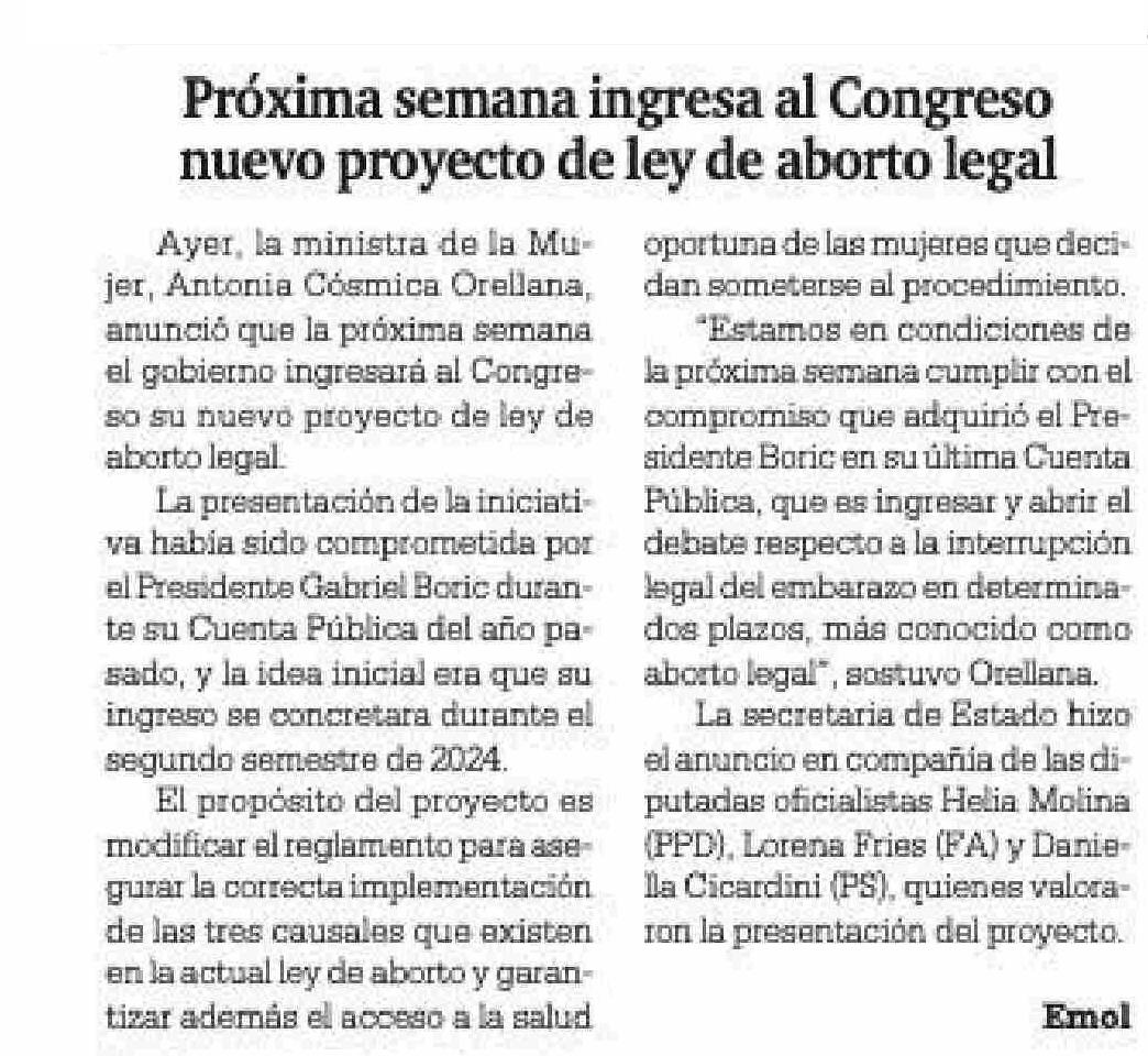 Próxima sernana ingresa al Congreso nuevo proyecto de ley de aborto legal 24-05-2025 La Prensa Austral |