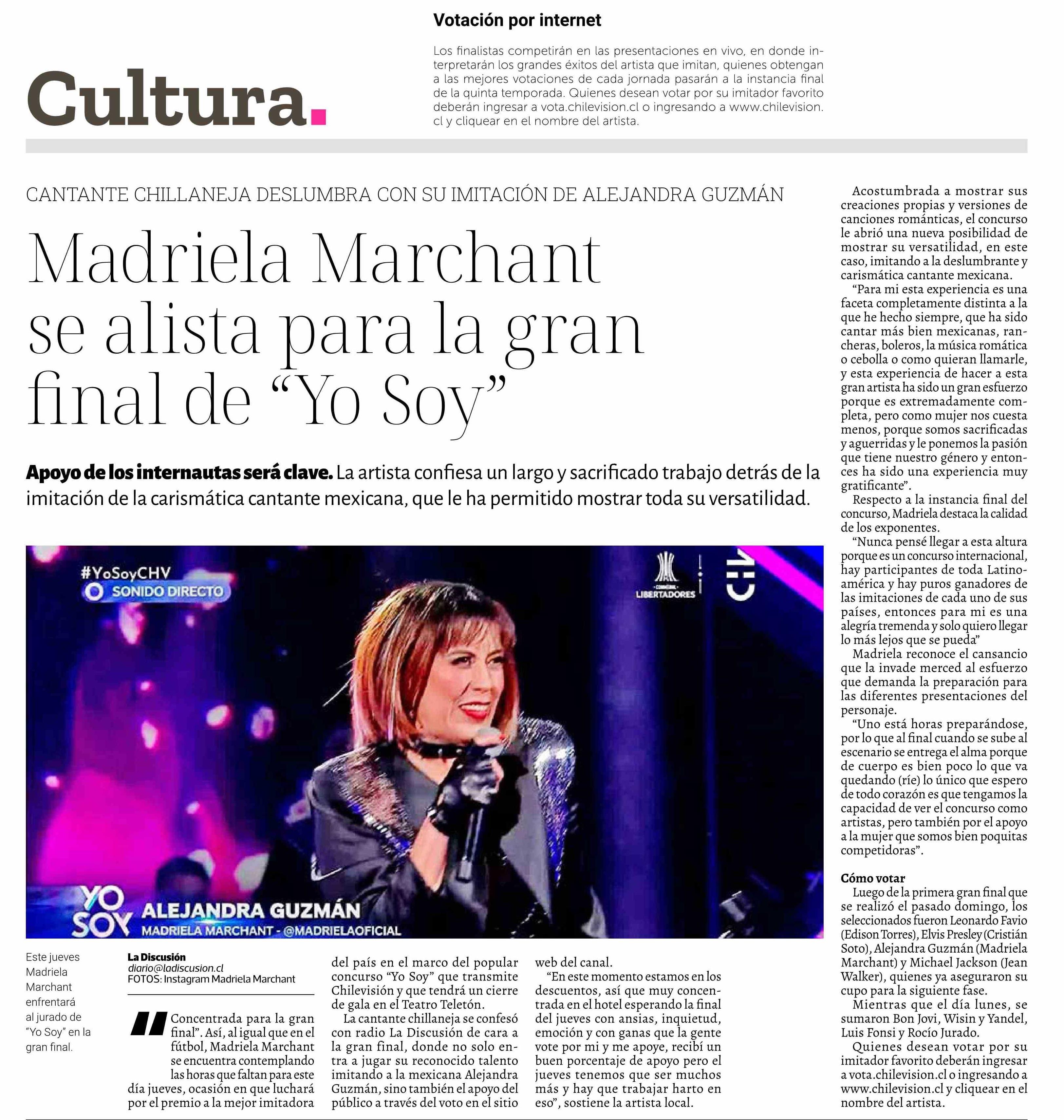 | Título: | Madriela Marchant se alista para la gran final de "Yo Soy" |