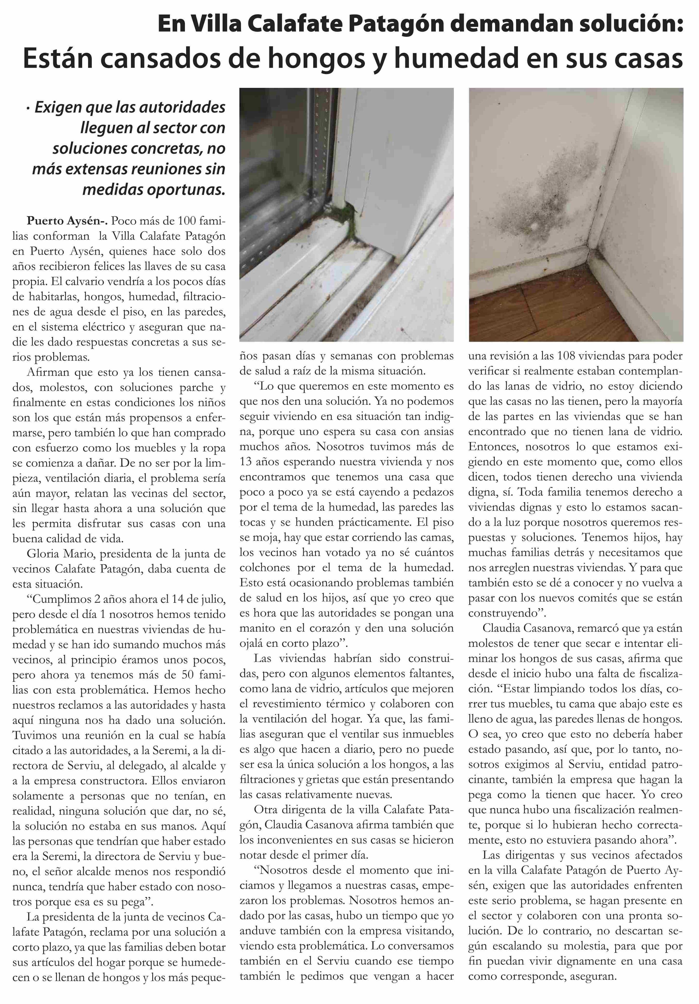 En Villa Calafate Patagon demandan solución: Están cansados de hongos y humedad en sus casas 10-07-2025 El Divisadero |