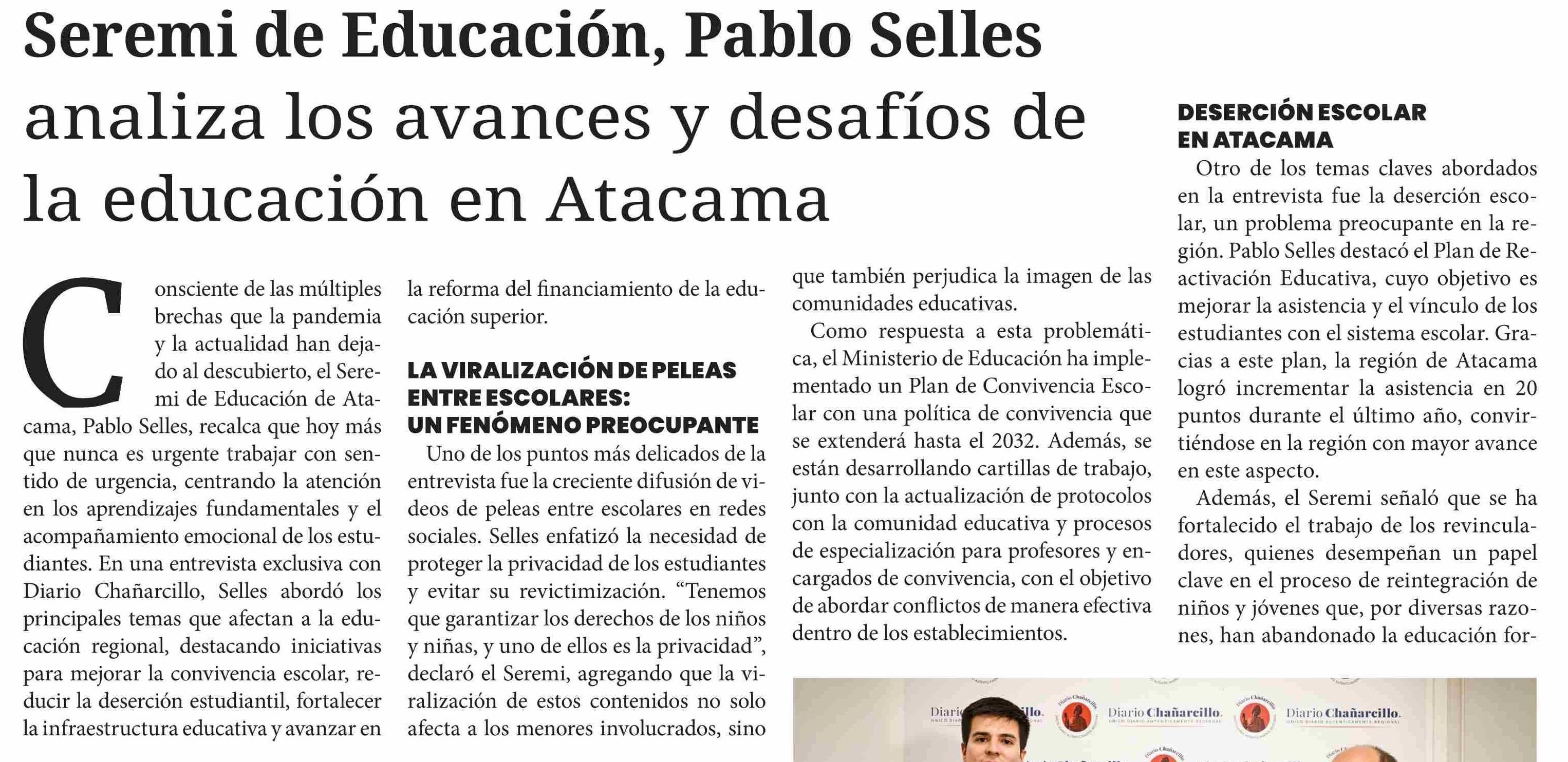 Seremi de Educación, Pablo Selles analiza los avances y desafíos de la educación en Atacama 06-05-2025 Diario Chañarcillo |