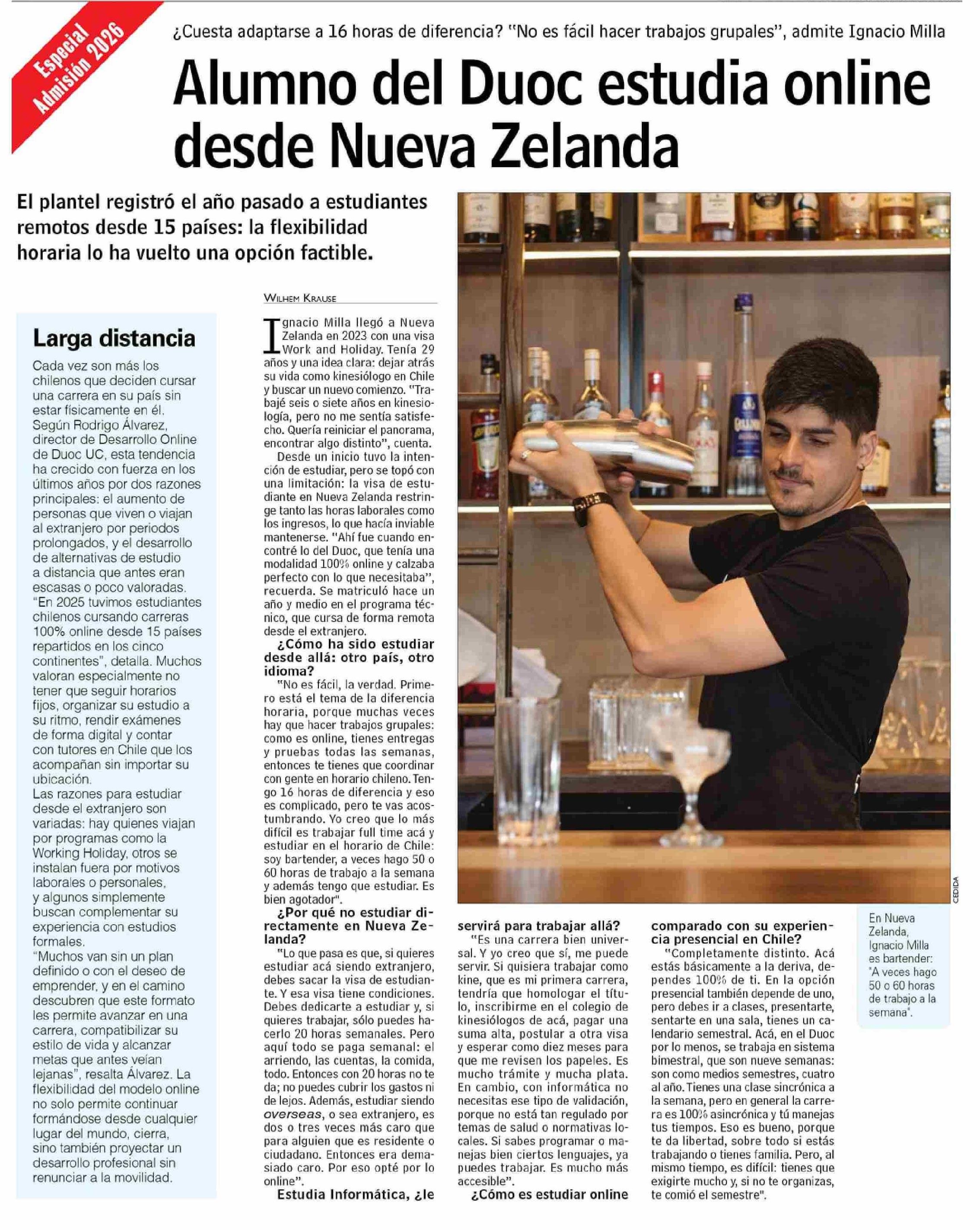 Alumno del Duoc estudia online desde Nueva Zelanda 19-01-2026 Las Últimas Noticias |