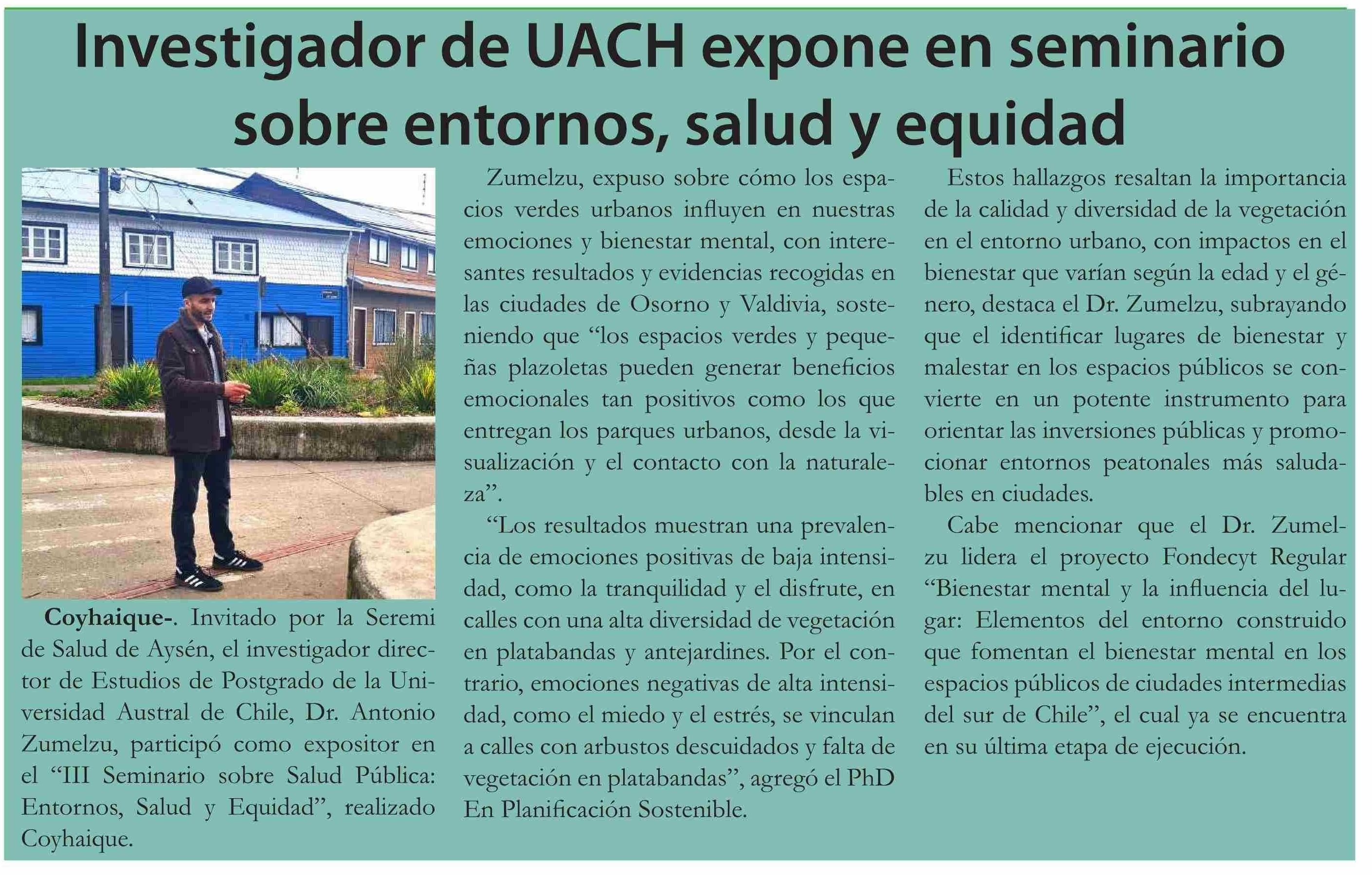 | Título: | Investigador de UACH expone en seminario sobre entornos, salud y equidad |
