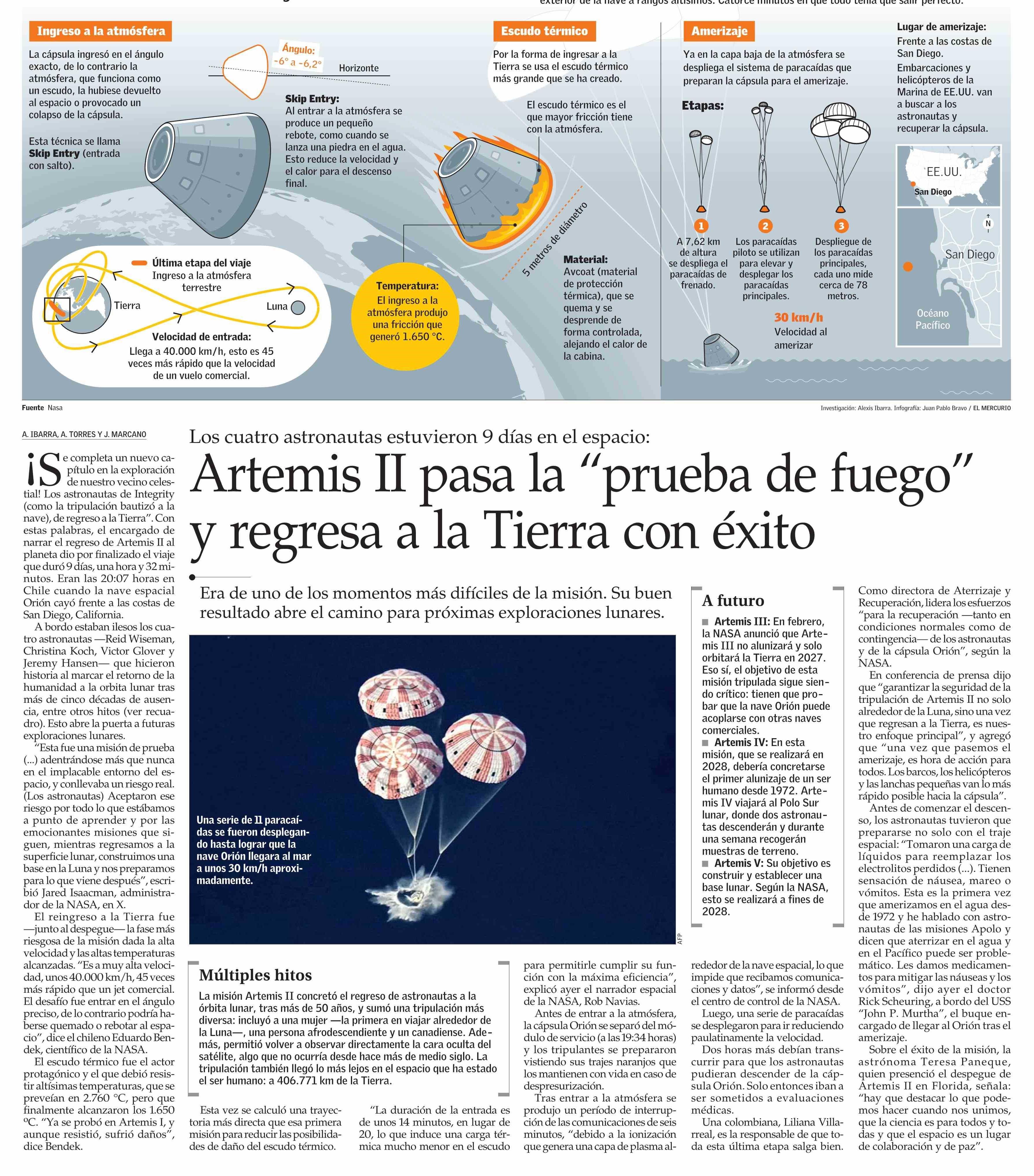 Título: Artemis II pasa la “prueba de fuego” y regresa a la Tierra con éxito