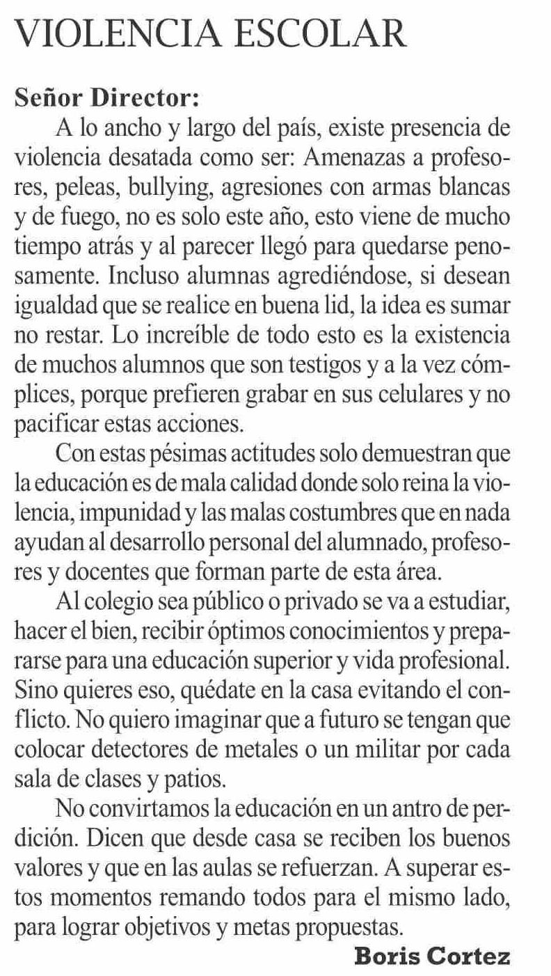 | Título: | CARTAS: VIOLENCIA ESCOLAR |
