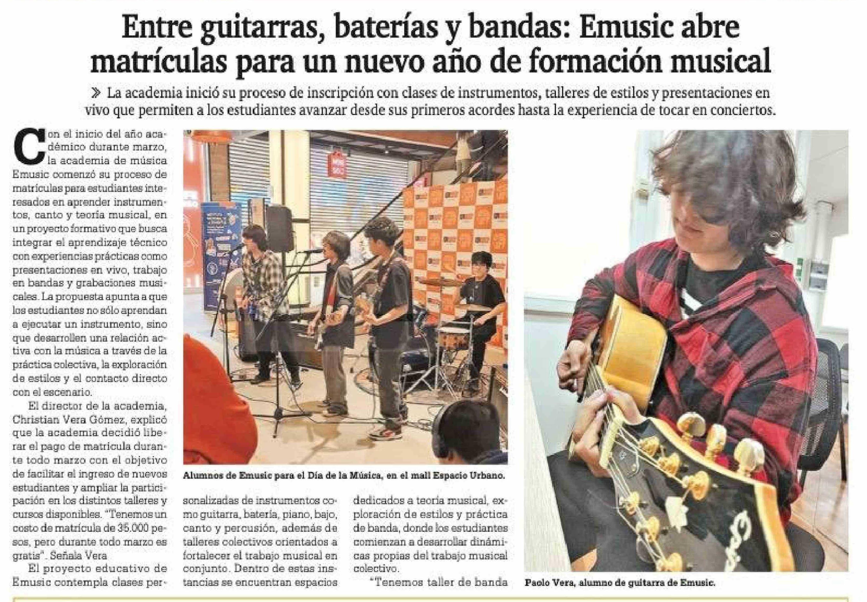 Título: Entre guitarras, baterías y bandas: Emusic abre matrículas para un nuevo año de formación musical