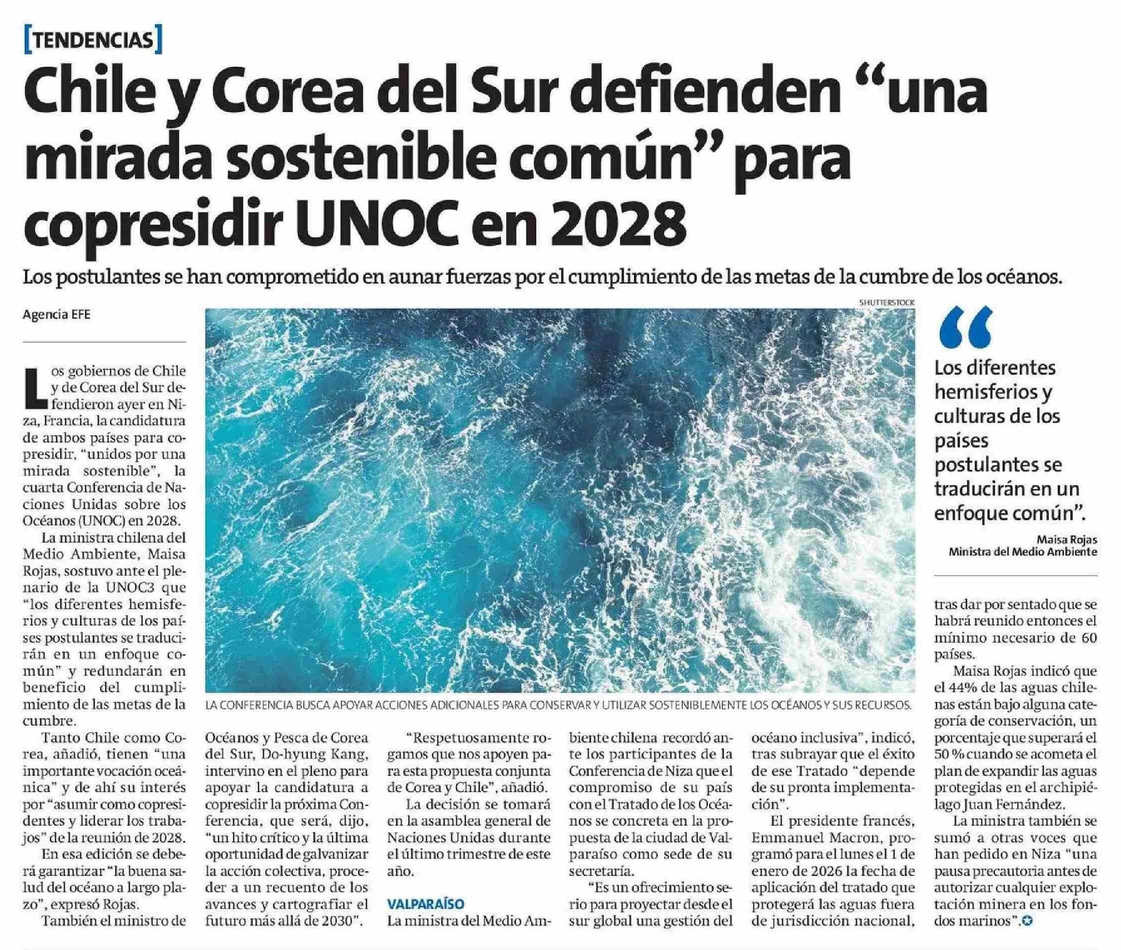 Chile y Corea del Sur defienden "una mirada sostenible común" para copresidir UNOC en 2028 11-06-2025 La Estrella de Antofagasta |