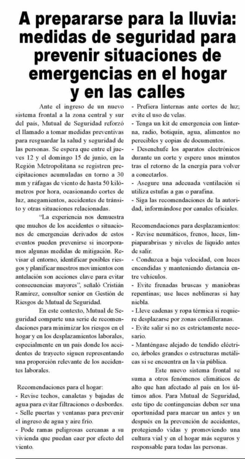 A prepararse para la lluvia: medidas de seguridad para prevenir situaciones de emergencias en el hogar v en las calles 11-06-2025 Diario VI Región |