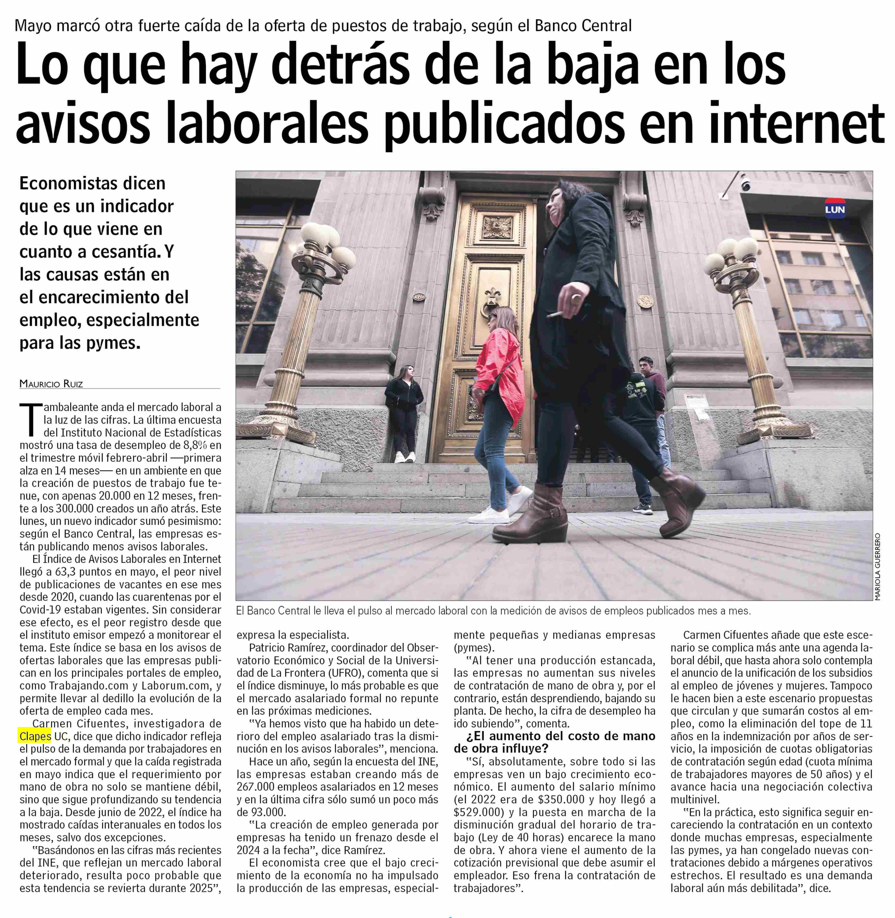 Lo que hay detrás de la baja en los avisos laborales publicados en internet 10-06-2025 Las Últimas Noticias |