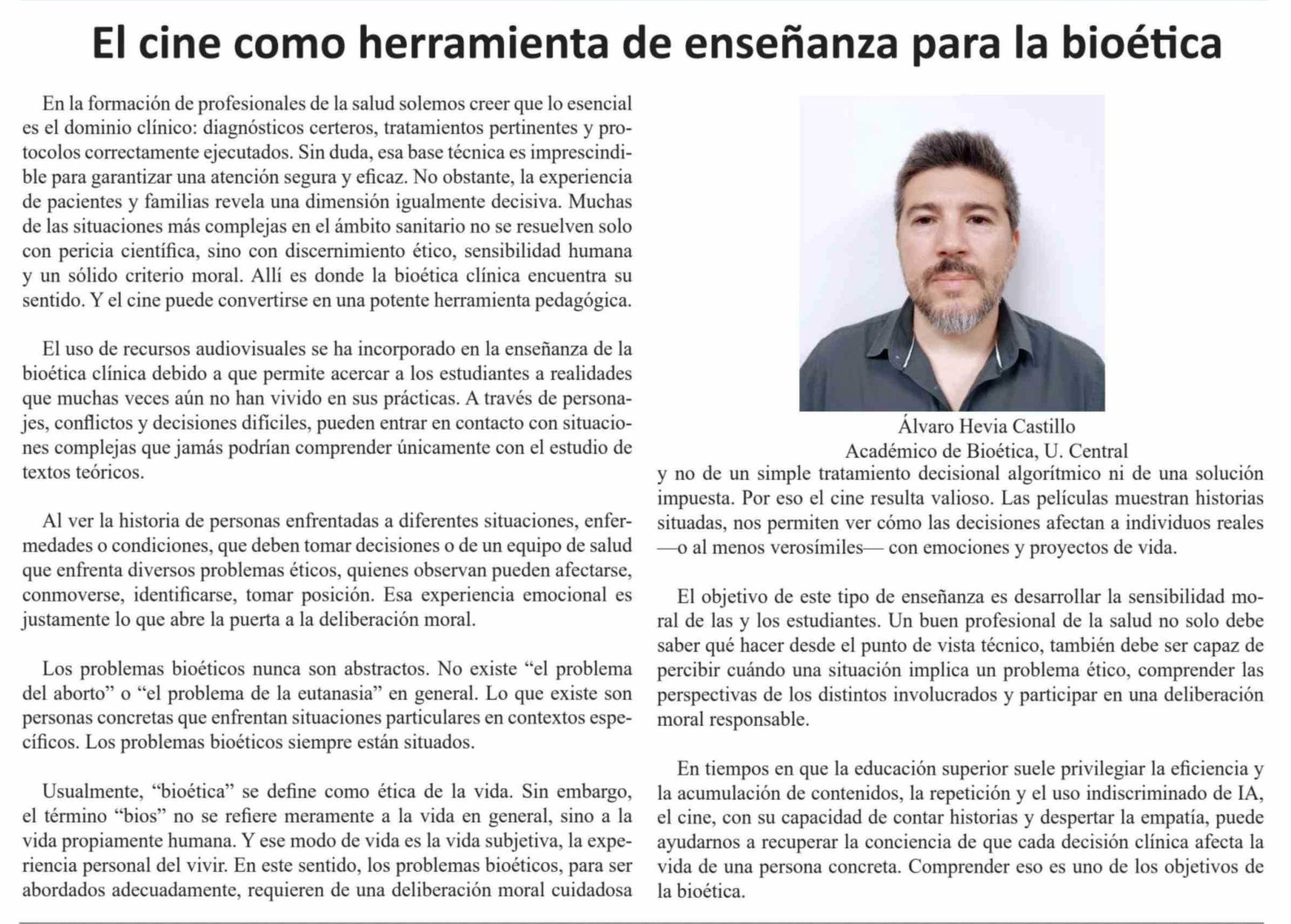 Columnas de Opinión: El cine como herramienta de enseñanza para la bioética 25-03-2026 El Heraldo |