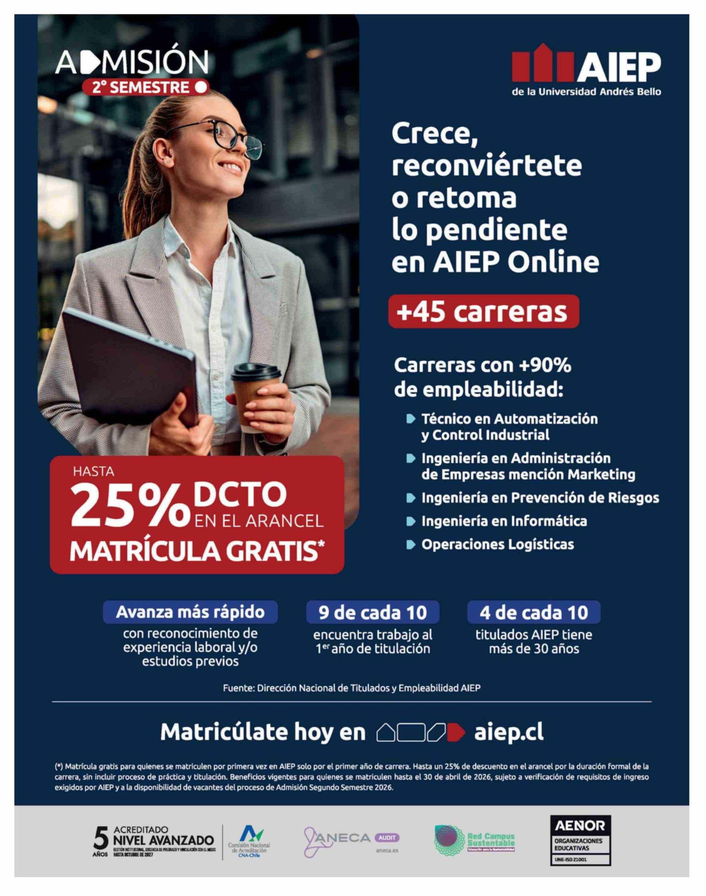 Aviso Educación: AIEP 24-04-2026 Las Últimas Noticias |