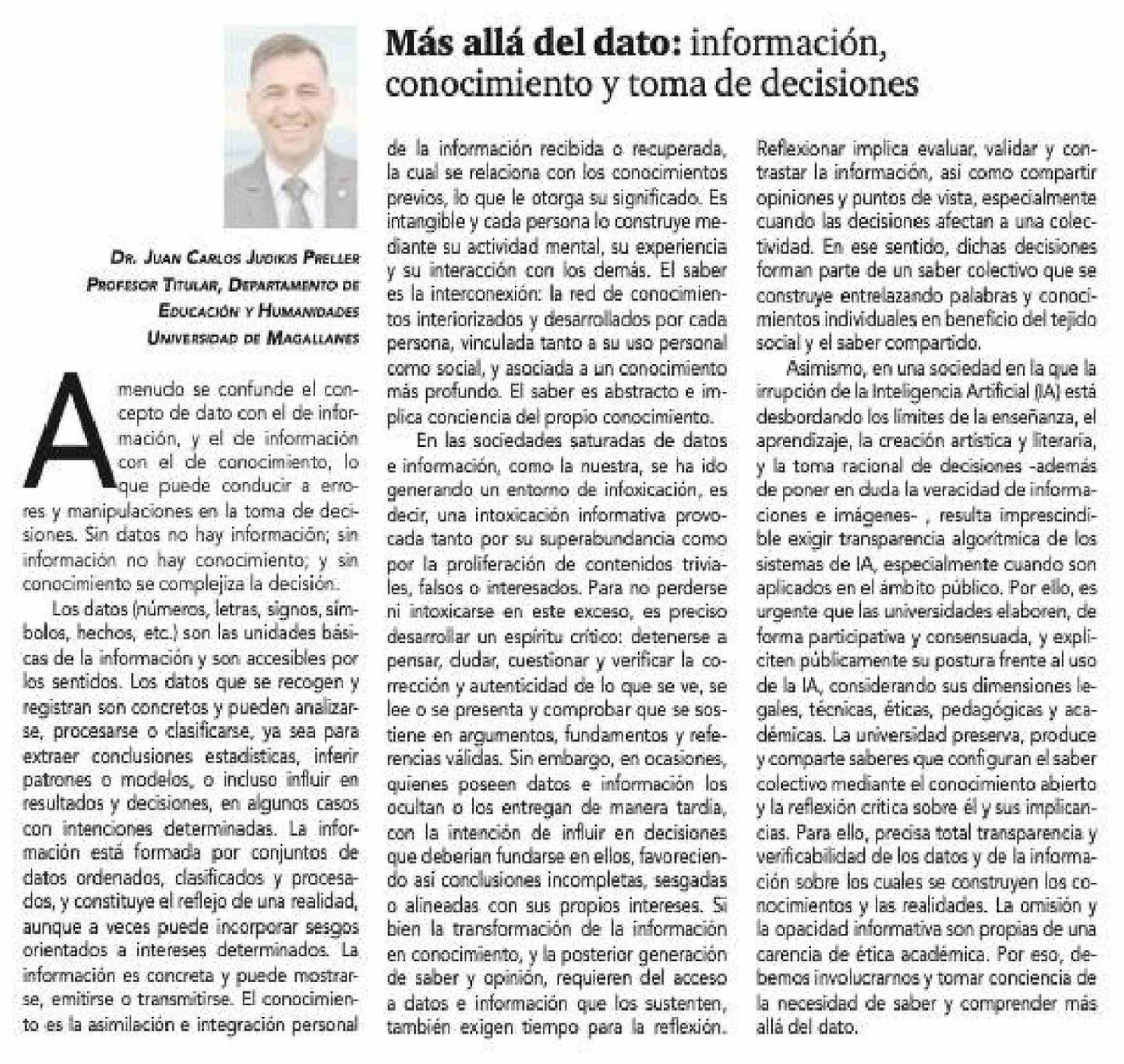 Título: Columnas de Opinión: Más allá del dato: información, conocimiento y toma de decisiones