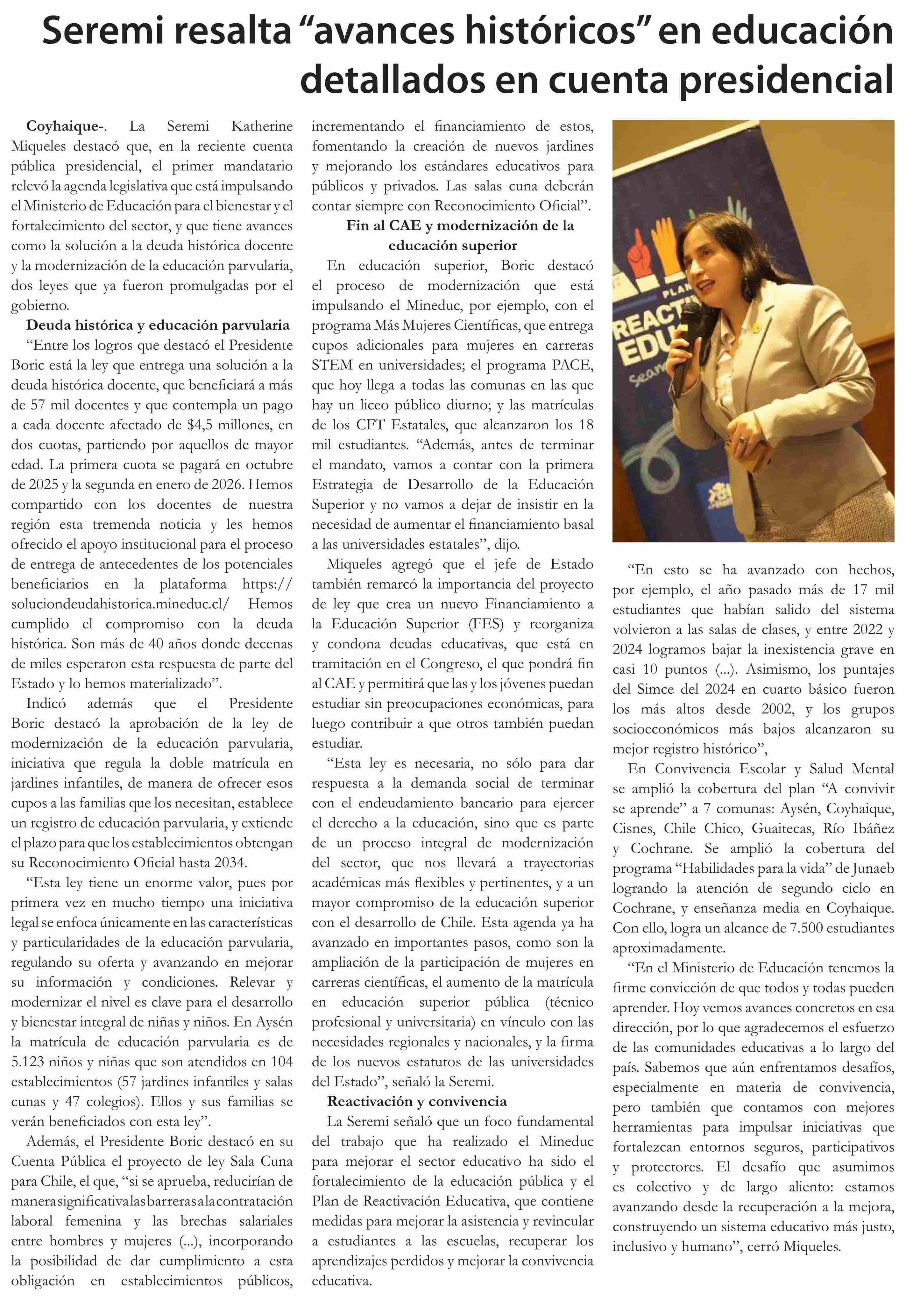 Seremi resalta “avances históricos” en educación detallados en cuenta presidencial 11-06-2025 El Divisadero |