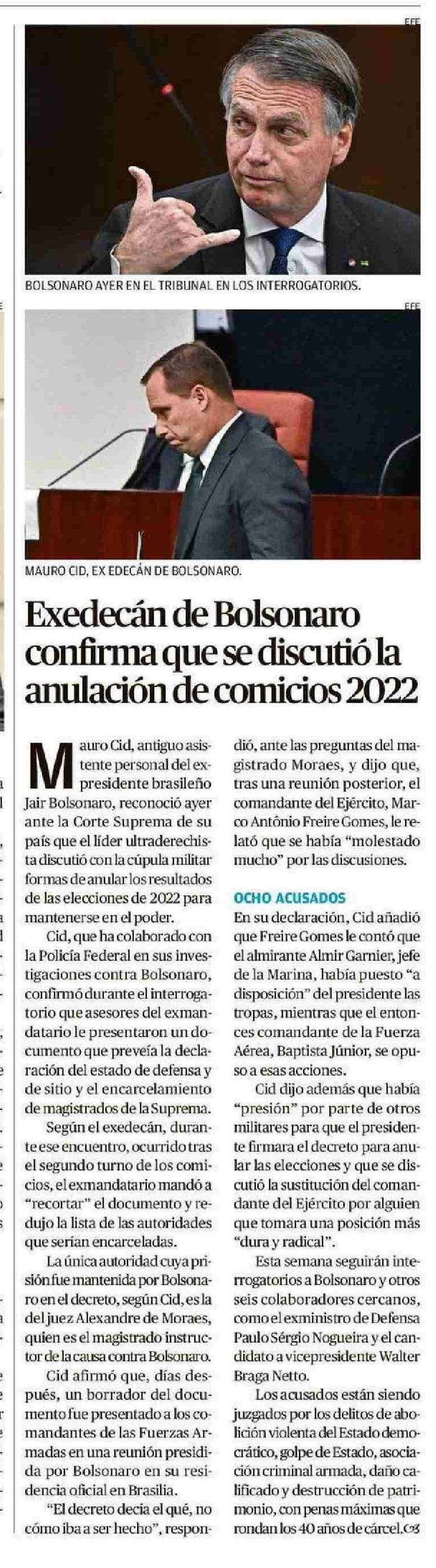Exedecán de Bolsonaro confirma que se discutió la anulación de comicios 2022 10-06-2025 Crónica de Chillán |