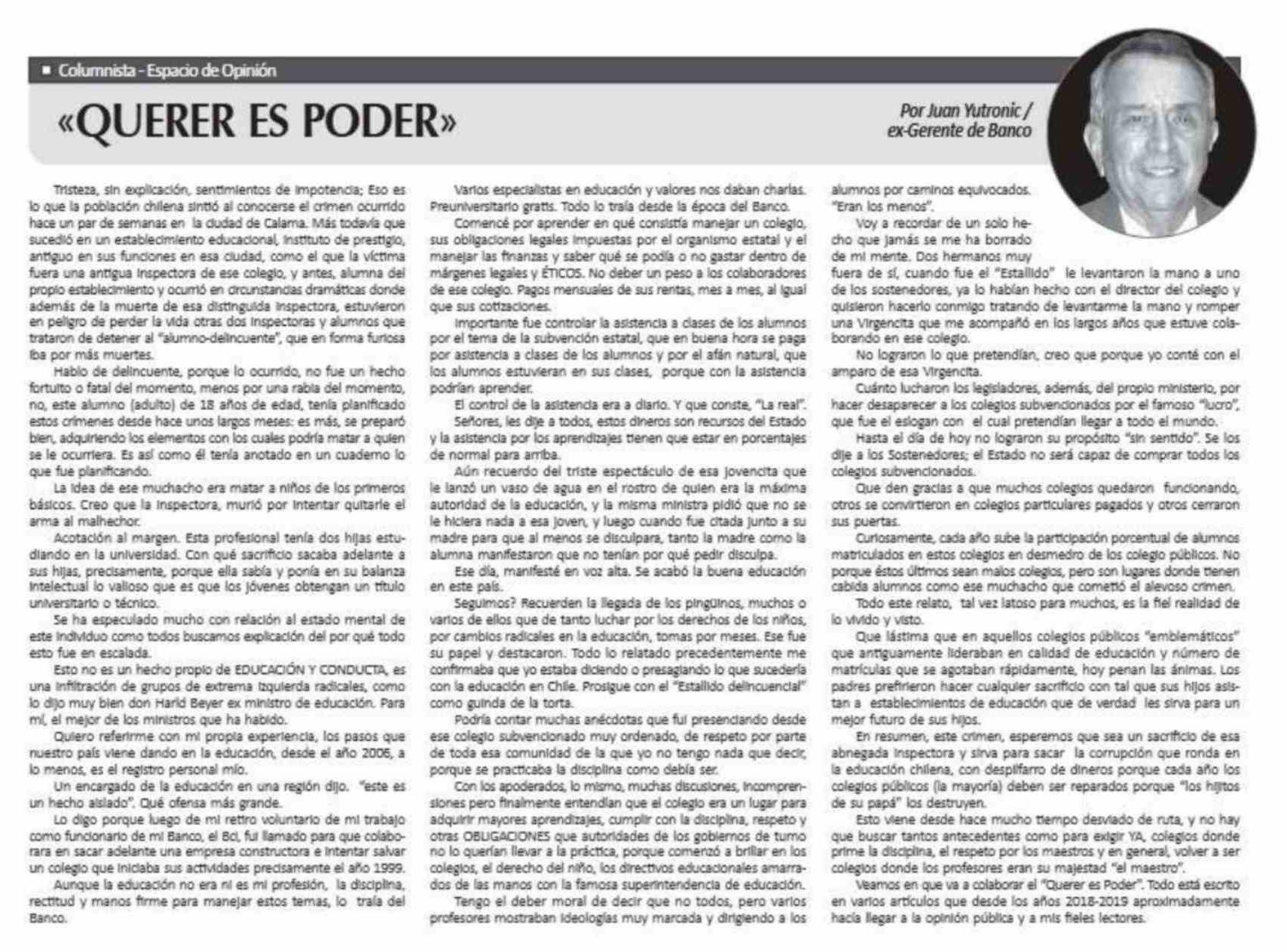 Título: Columnas de Opinión: «QUERER ES PODER»