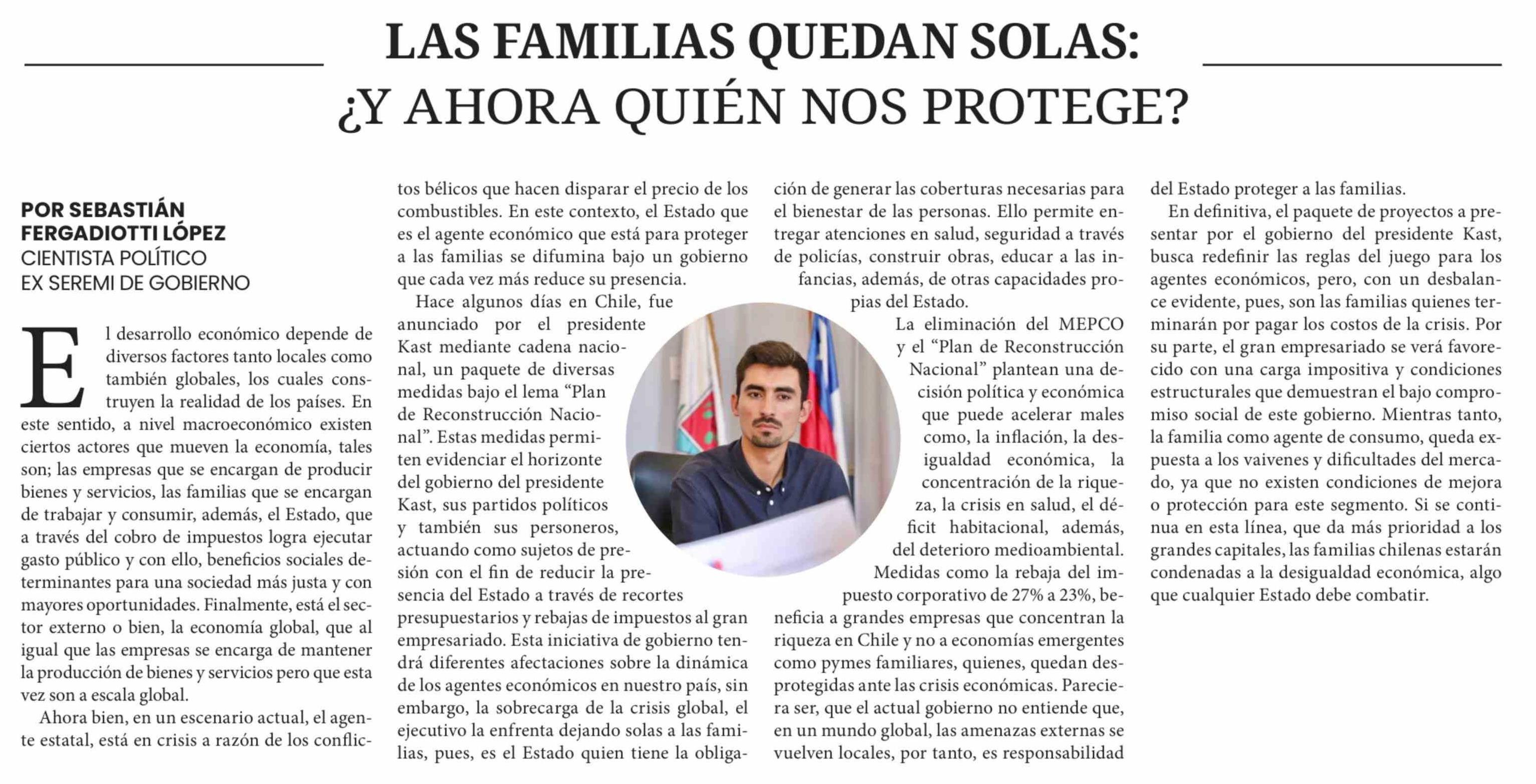 Columnas de Opinión: LAS FAMILIAS QUEDAN SOLAS: ¿Y AHORA QUIÉN NOS PROTEGE? 23-04-2026 Diario Chañarcillo |